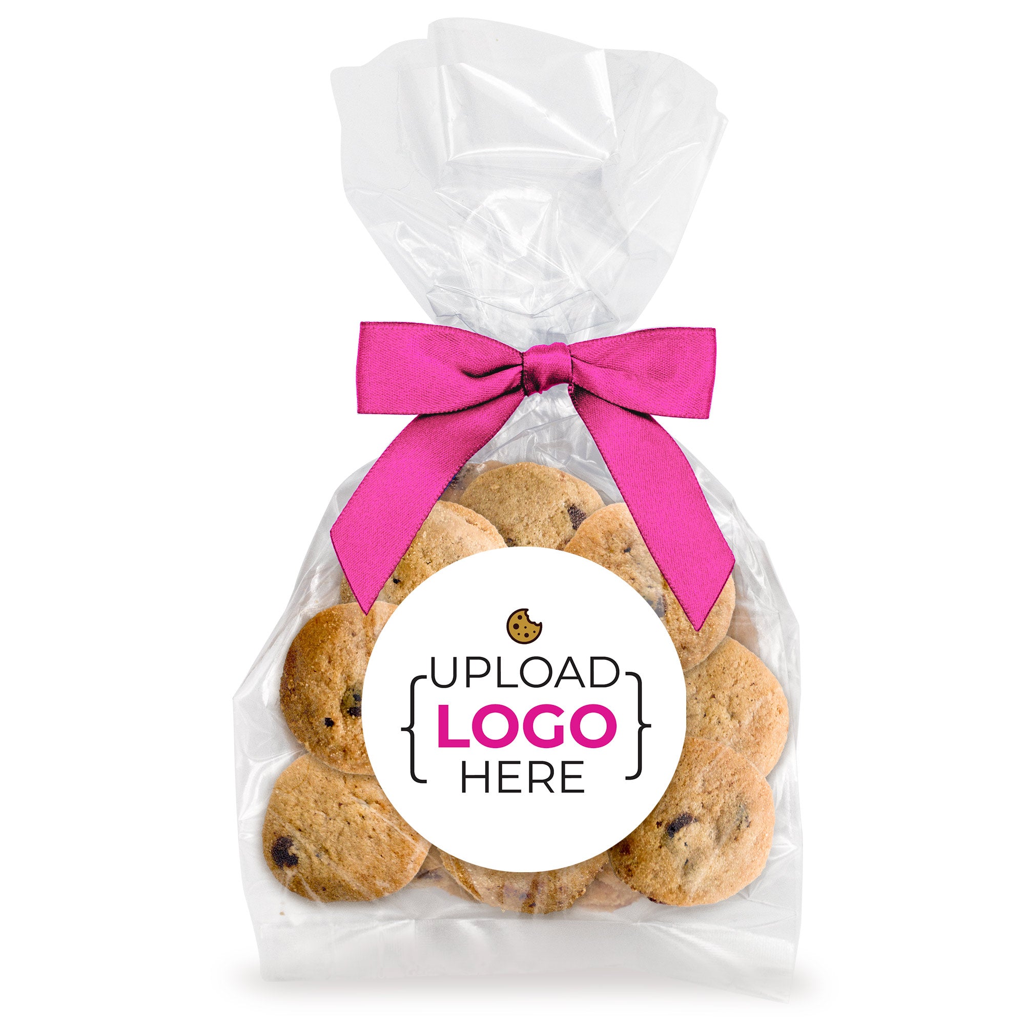 Bite-Sized Chocolate Chip Cookies (3 oz., approx. 24 cookies) W/ Full Color Custom Sticker & Bow Choice - Logo Upload & Message w/ Color Choice
