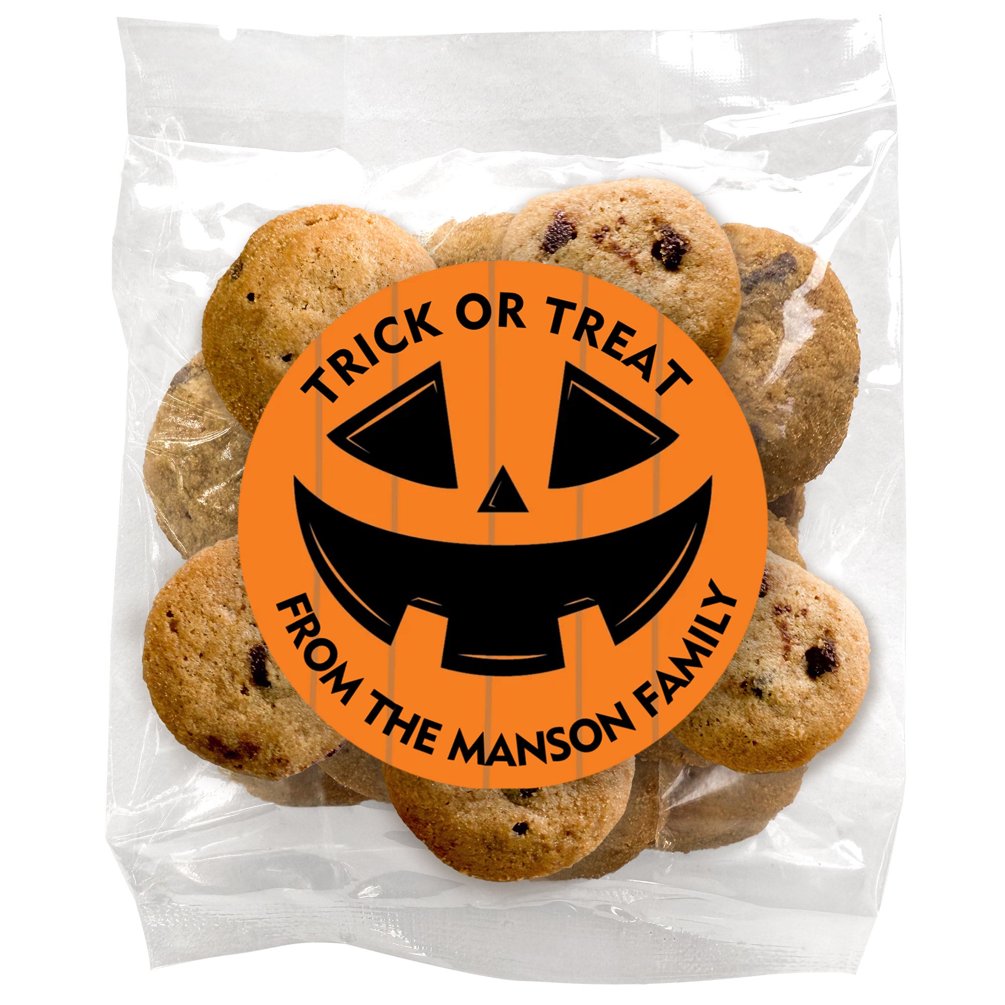 Bite-Sized Chocolate Chip Cookies (2 oz., approx. 14 cookies) W/ Full Color Custom Sticker - Personalized Pumpkin