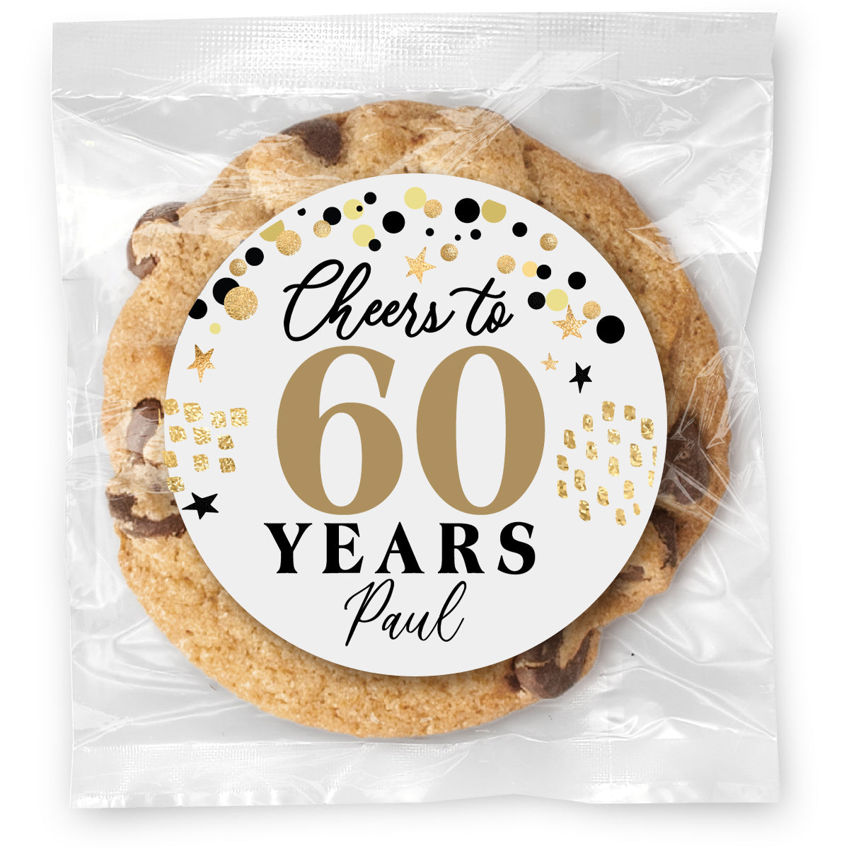 Cheers to "Any Age" Years Milestone Birthday - Gourmet Cookie w/ Full Color Personalized sticker