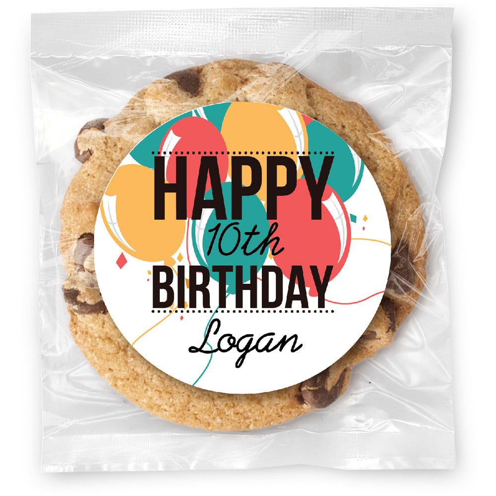 Happy Birthday Balloons - Gourmet Cookie w/ Full Color Personalized sticker