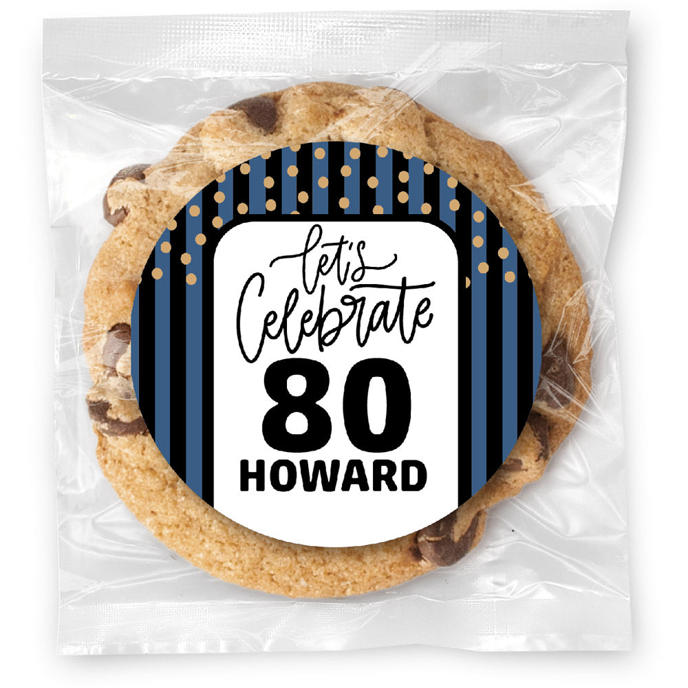 Let's Celebrate Stripes - Blue - Gourmet Cookie w/ Full Color Personalized sticker