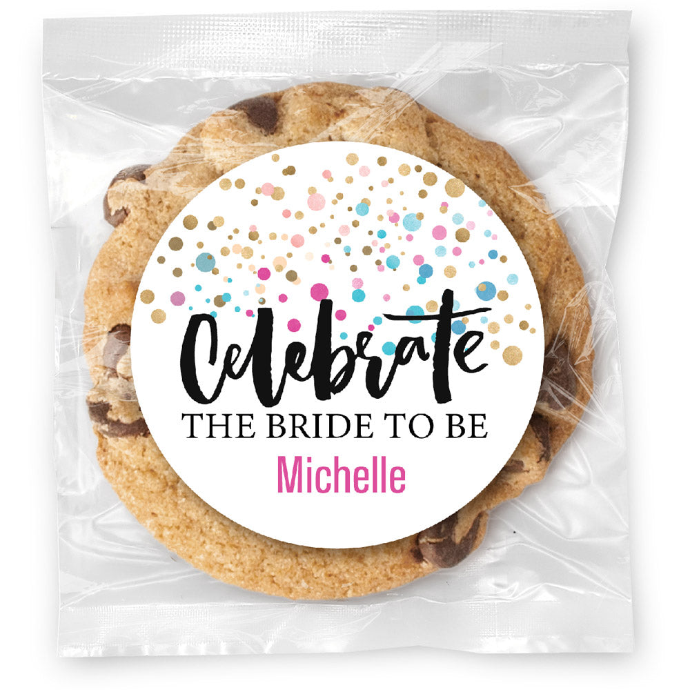 Celebrate Confettie Bride to be - Gourmet Cookie w/ Full Color Personalized sticker
