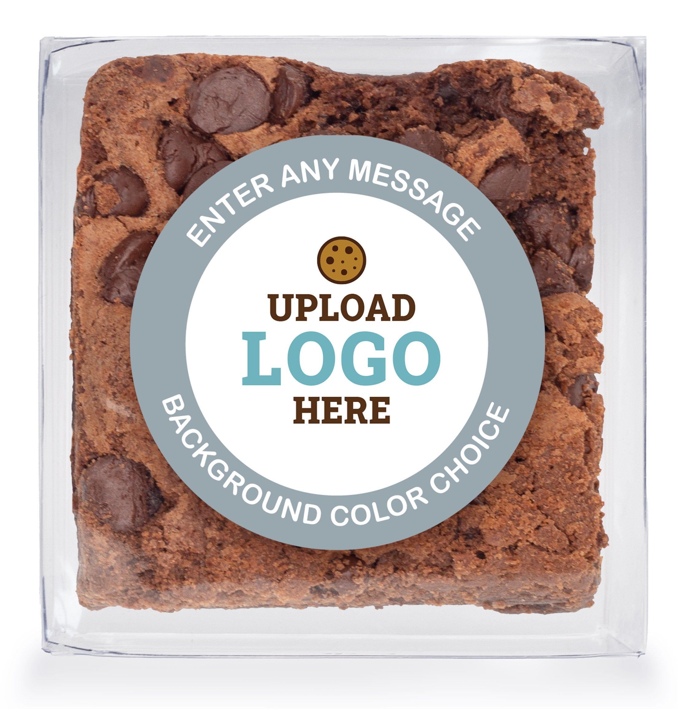 Logo Upload & Message w/ Color Choice - Chocolate Chip Fudge Brownies W/Full Color Personalized Sticker
