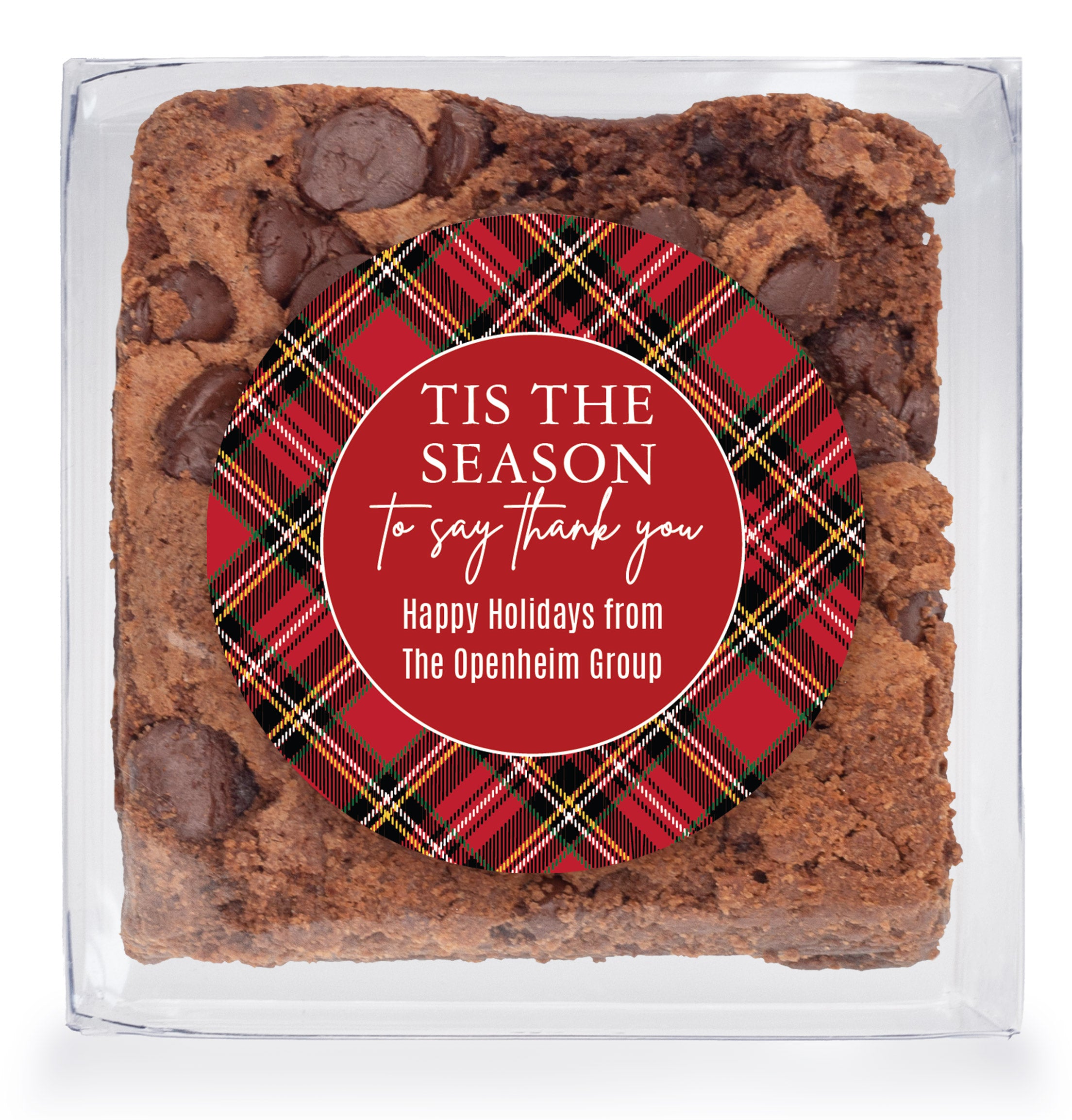 Tis the Season to say thank you - Chocolate Chip Fudge Brownies W/Full Color Personalized Sticker