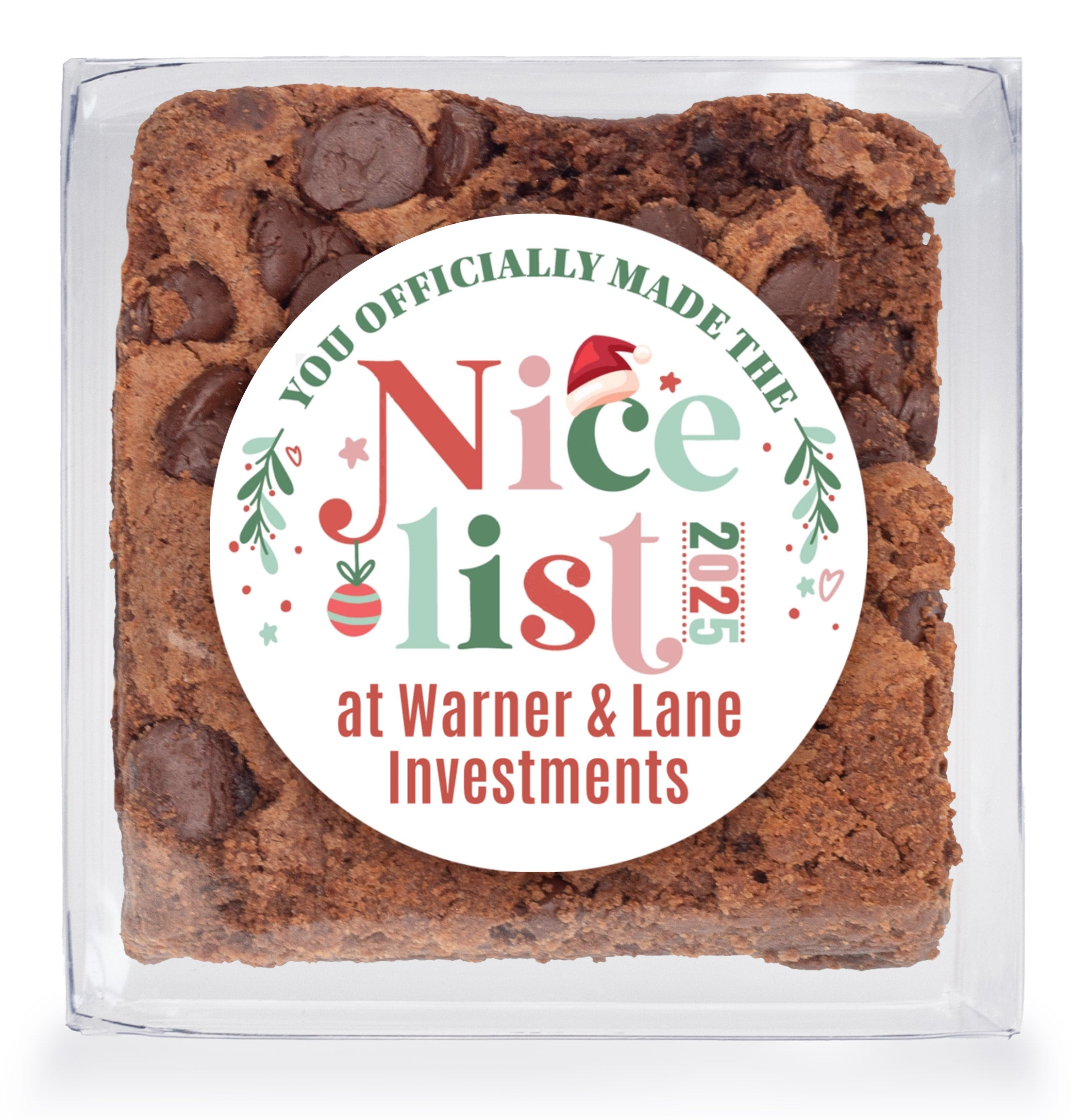 You Officially Made the Nice List - Chocolate Chip Fudge Brownies W/Full Color Personalized Sticker