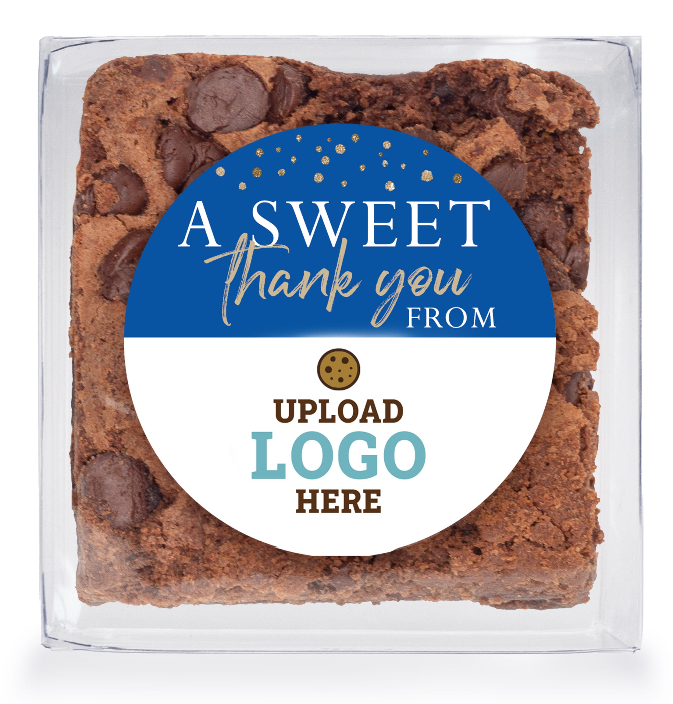A Sweet Thank You from Logo Upload (Any color) - Chocolate Chip Fudge Brownies W/Full Color Personalized Sticker