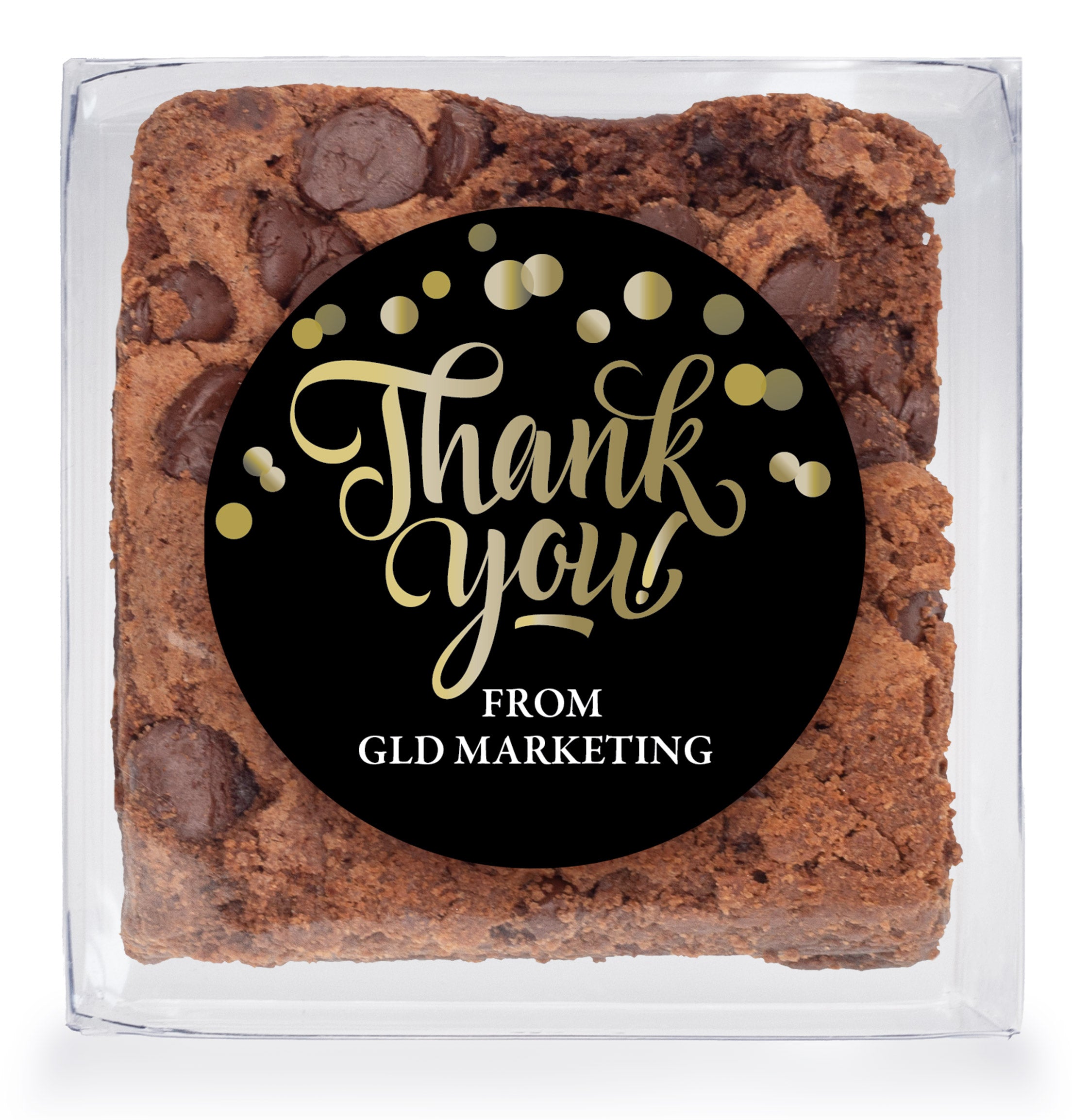 Thank You Gold and Black - Chocolate Chip Fudge Brownies W/Full Color Personalized Sticker