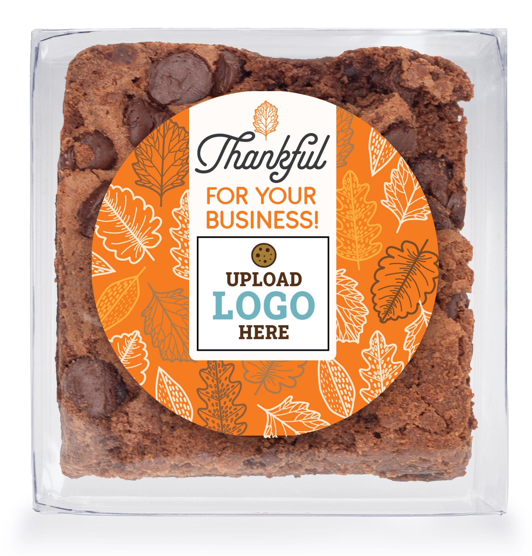 Thankful for your business (Logo Upload) - Chocolate Chip Fudge Brownies W/Full Color Personalized Stickerwnies W/Full Color Personalized Sticker