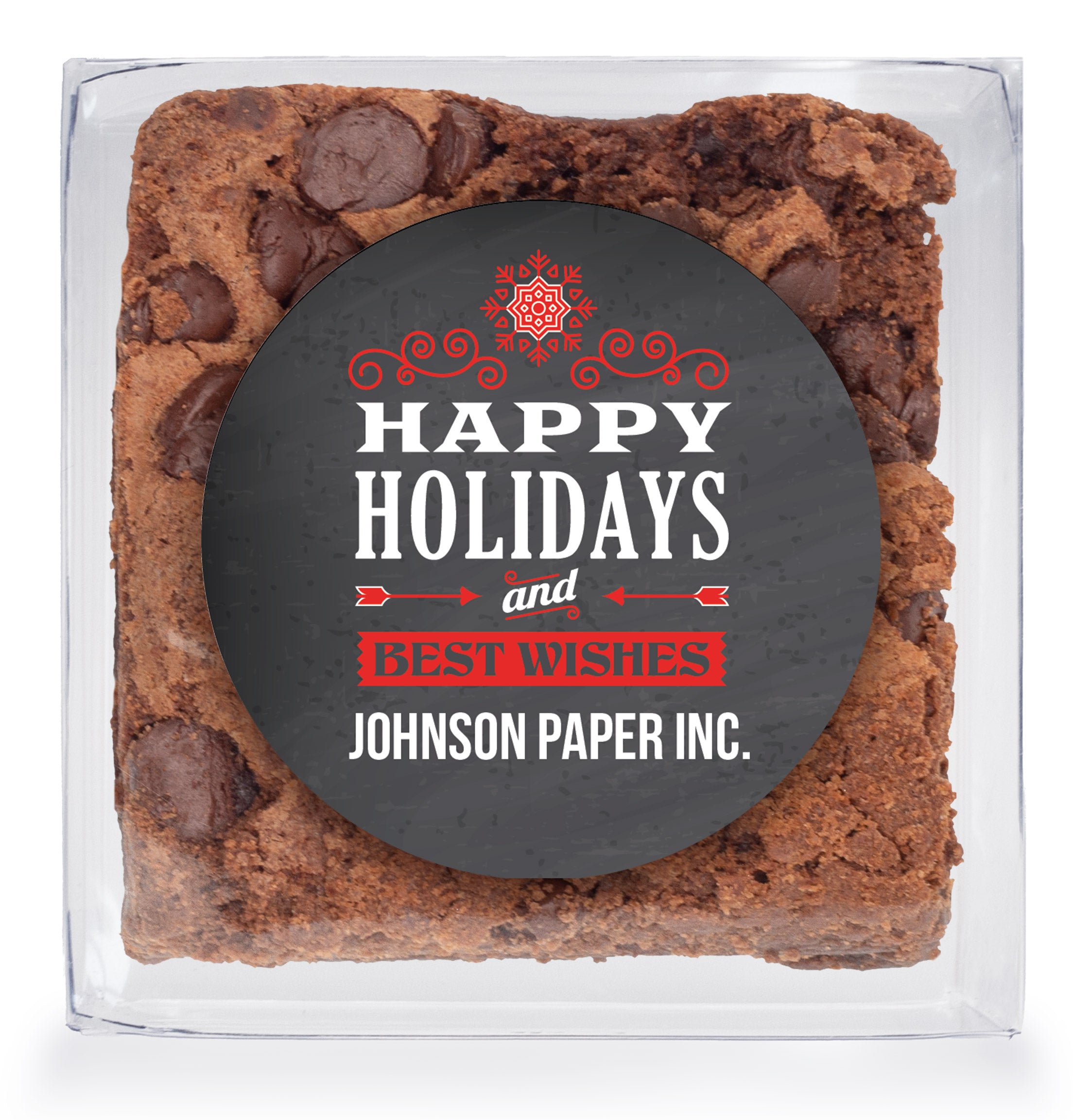 Warm Holiday Wishes - Chocolate Chip Fudge Brownies W/Full Color Personalized Sticker