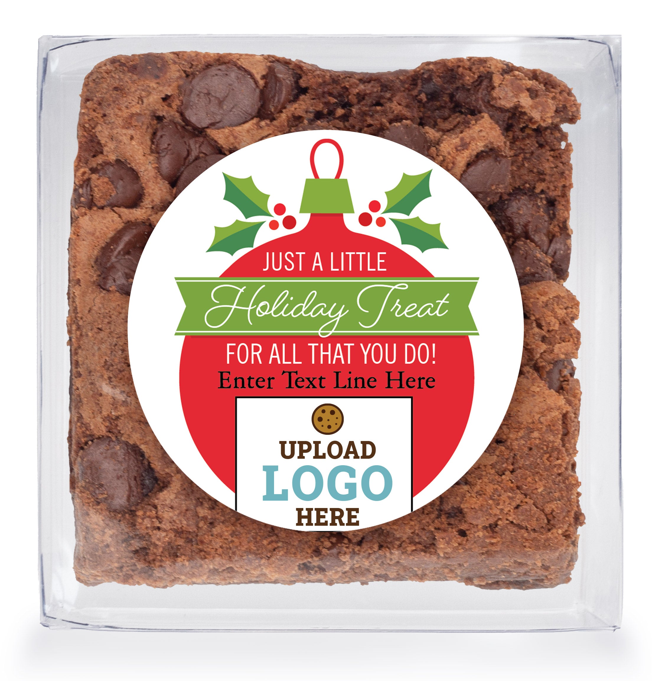 Wreath Logo Upload & Message - Chocolate Chip Fudge Brownies W/Full Color Personalized Sticker