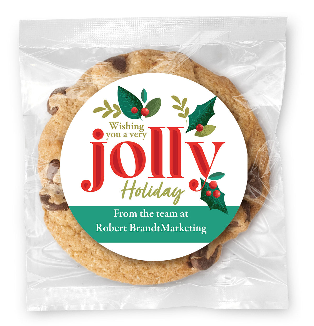 Wishing you a Jolly Holiday - Gourmet Cookie w/ Full Color Personalized sticker