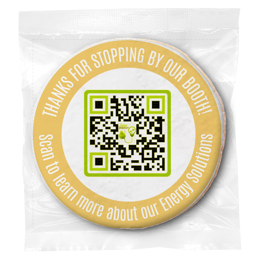 - Individually wrapped 3 inch custom-printed sugar cookies.