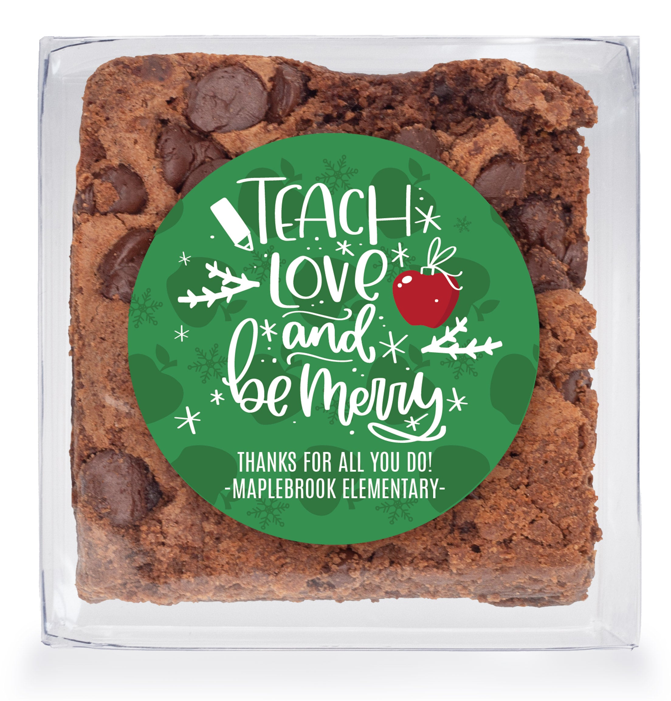 Teach, Love & Be Merry Christmas - Chocolate Chip Fudge Brownies W/Full Color Personalized Sticker