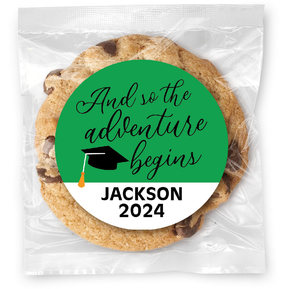 Adventure Begins Grad - Gourmet Cookie w/ Full Color Personalized sticker