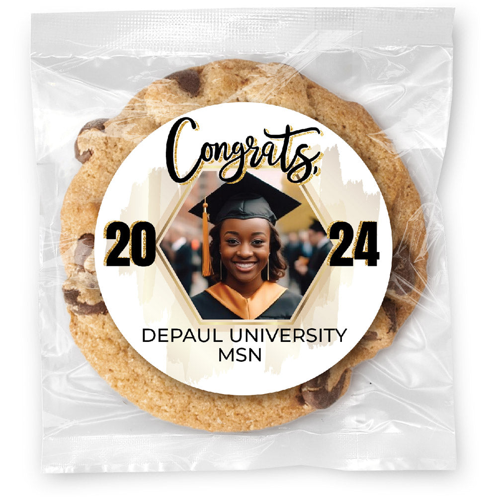 Congrats Photo Gold Hexagon - Gourmet Cookie w/ Full Color Personalized sticker