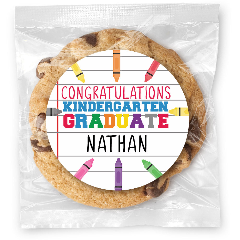Crayons Kindergarten Grad - Gourmet Cookie w/ Full Color Personalized sticker