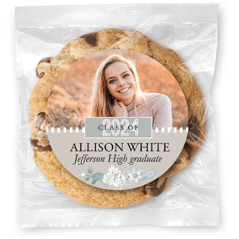 Floral Photo Grad - Gourmet Cookie w/ Full Color Personalized sticker