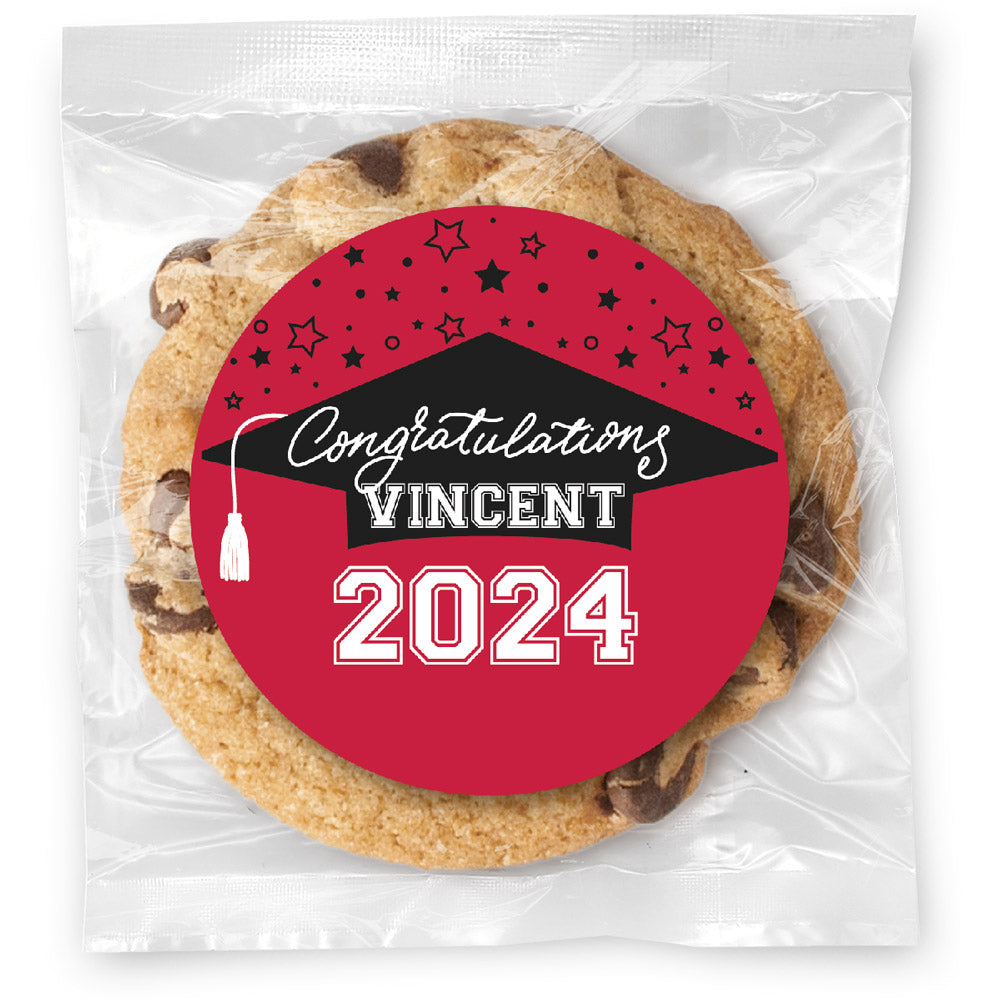 Grad - Stars and Cap - Gourmet Cookie w/ Full Color Personalized sticker