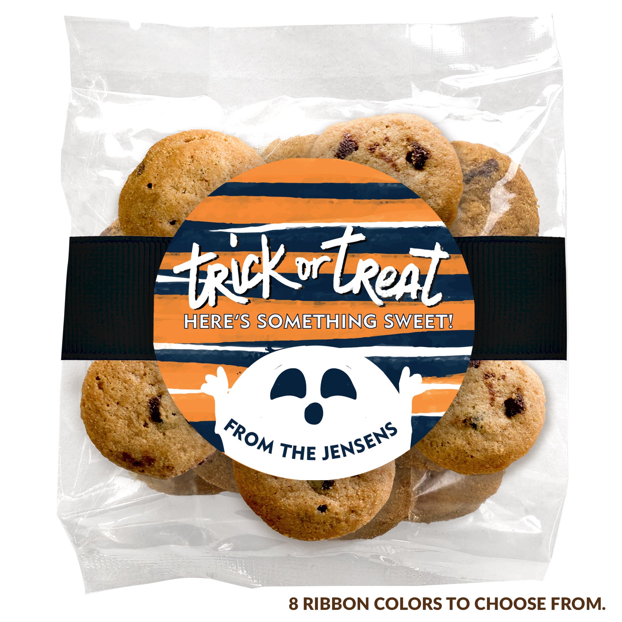 Bite-Sized Chocolate Chip Cookies (2 oz., approx. 14 cookies) W/ Full Color Custom Sticker - Trick or Treat Ghost