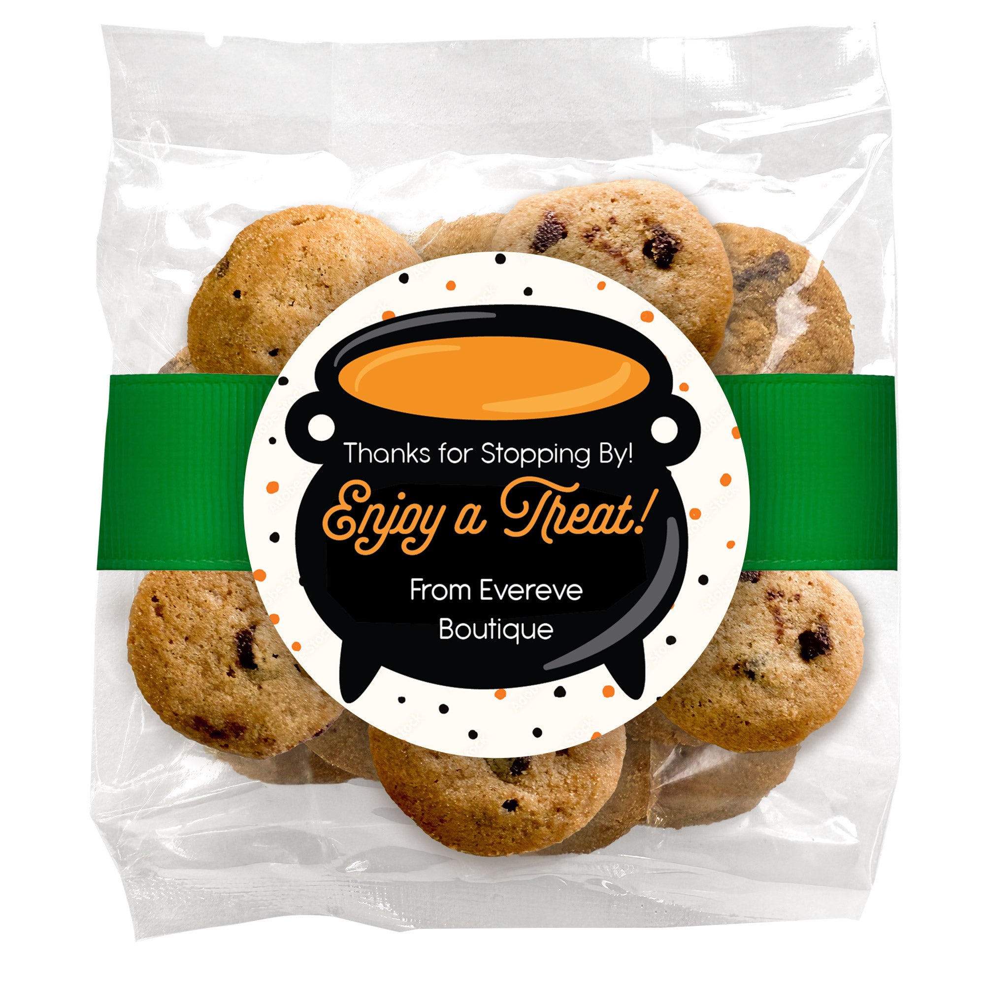 Bite-Sized Chocolate Chip Cookies (2 oz., approx. 14 cookies) W/ Full Color Custom Sticker - Enjoy a Treat Halloween