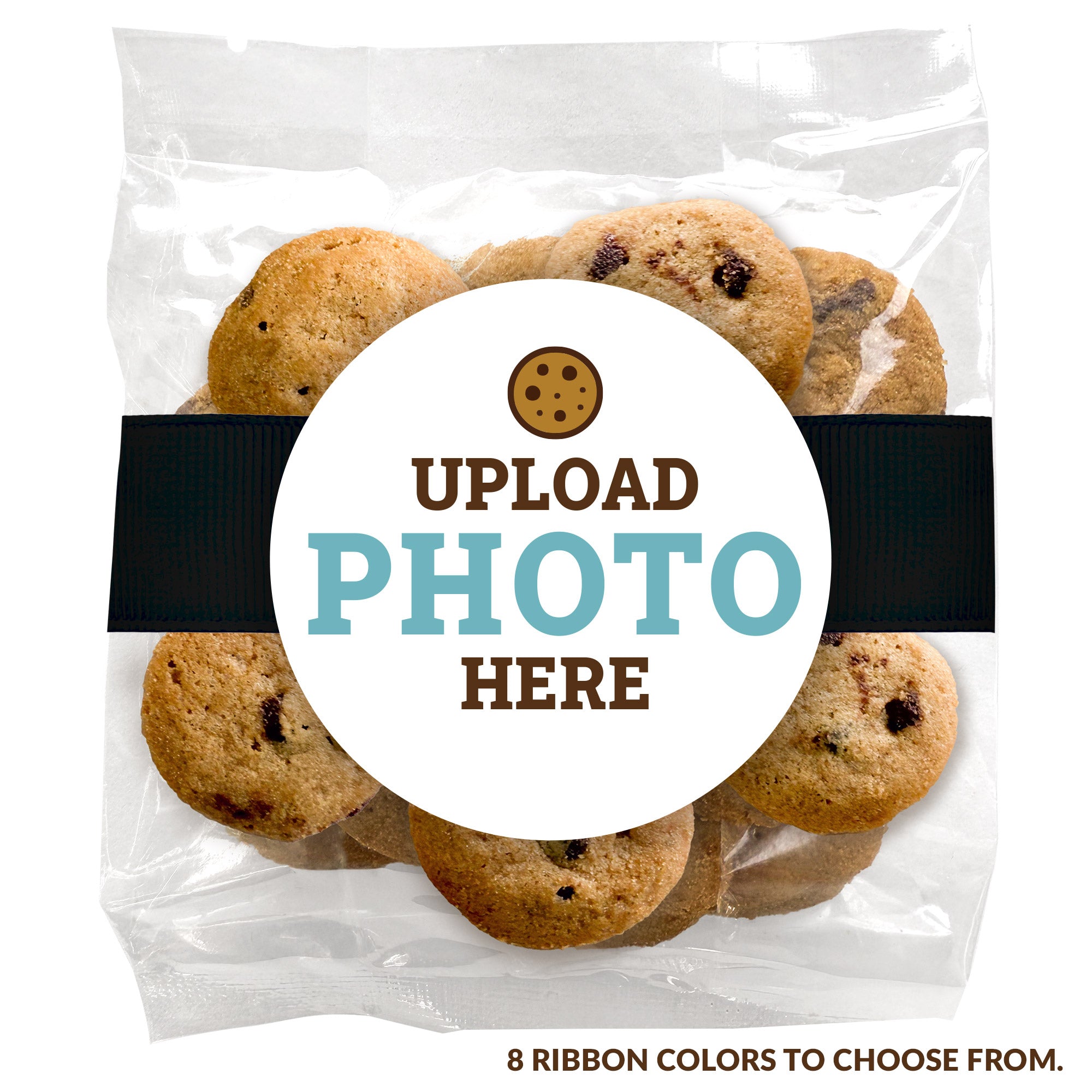 Bite-Sized Chocolate Chip Cookies (2 oz., approx. 14 cookies) W/ Full Color Custom Sticker - Custom Add Your Own Photo Upload