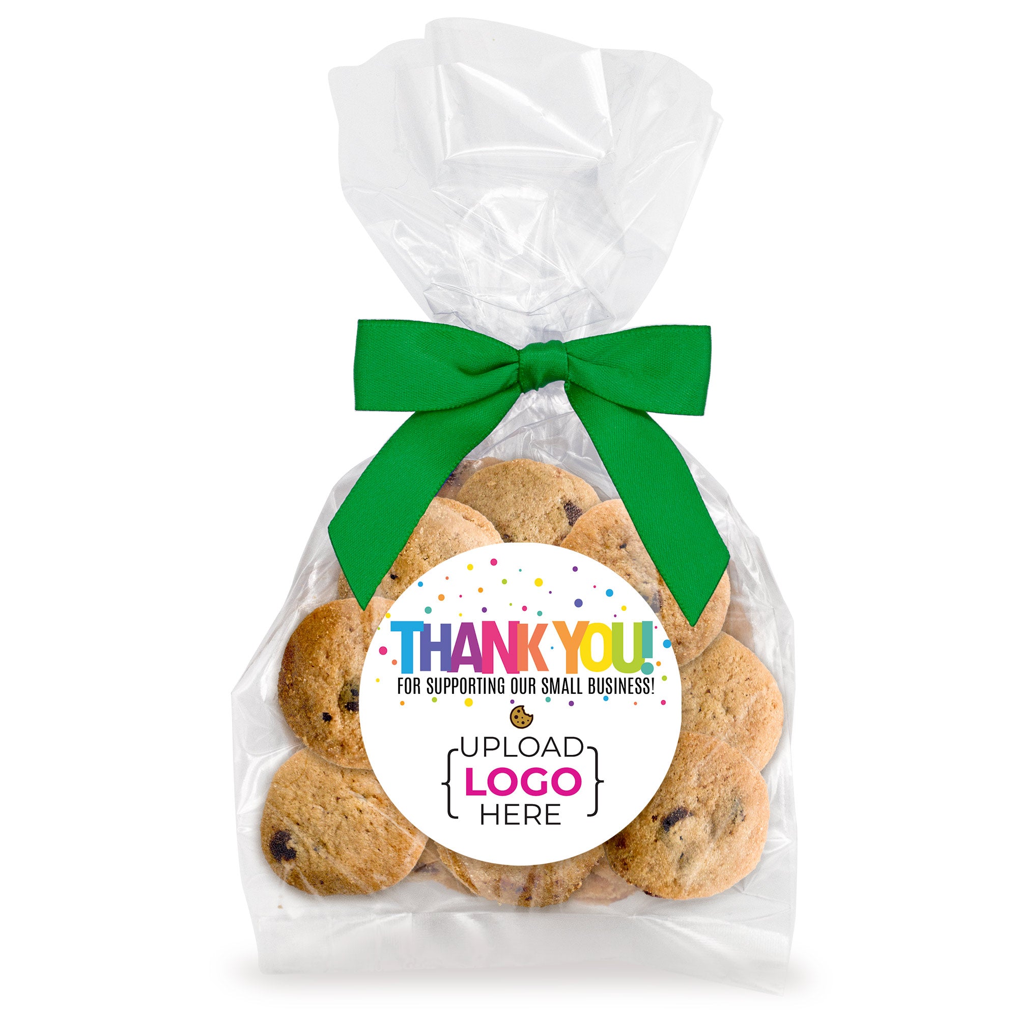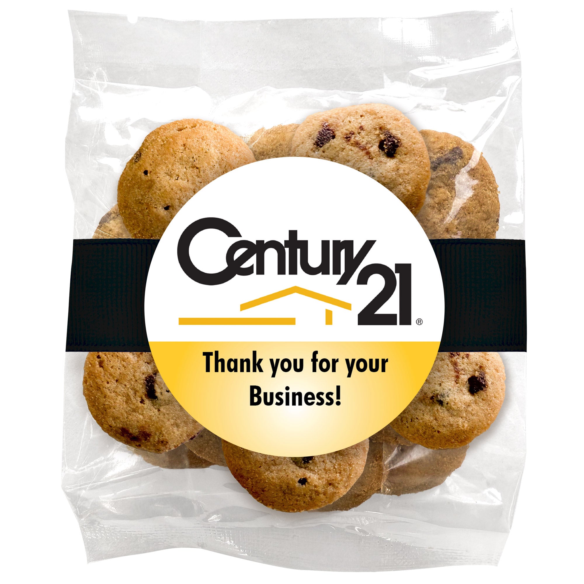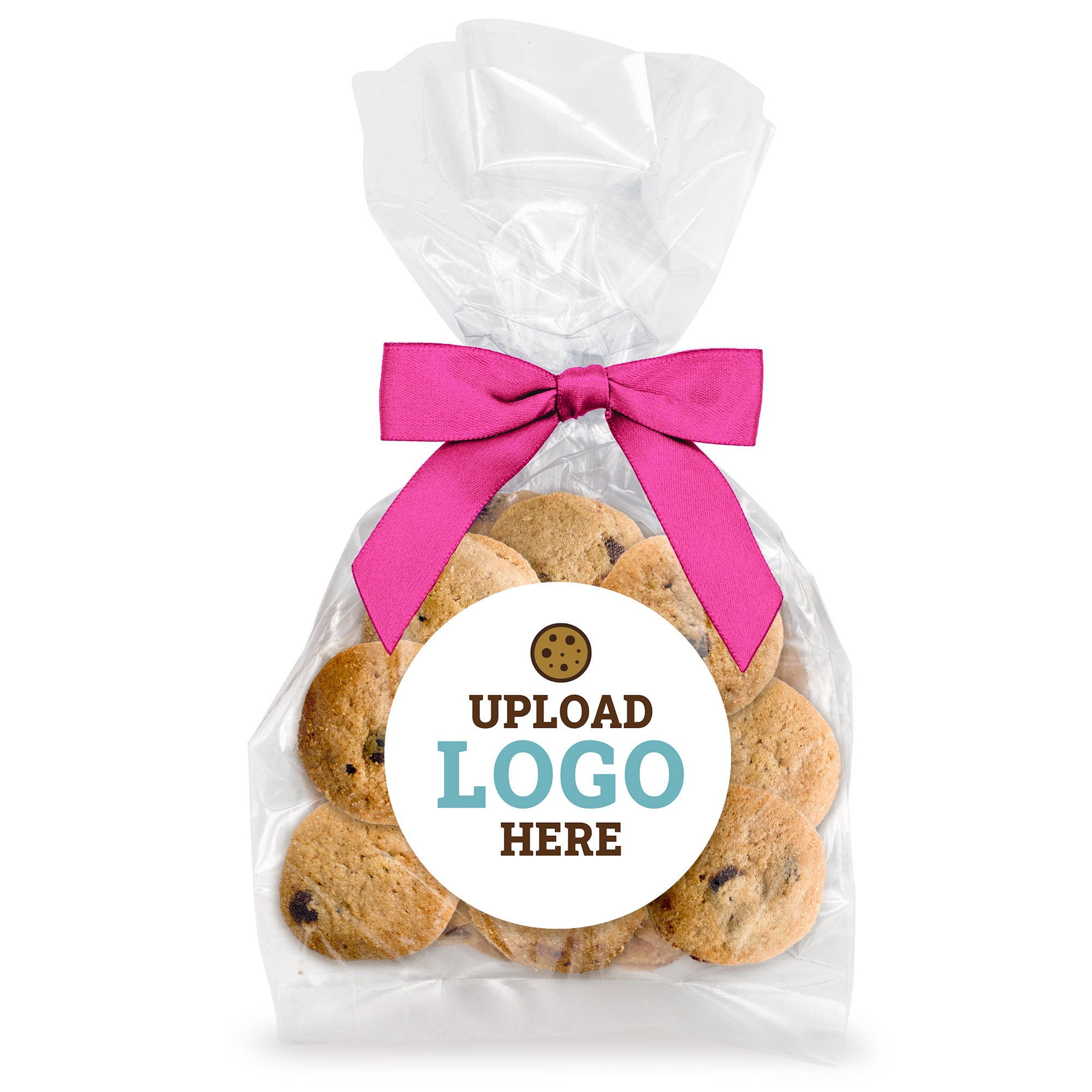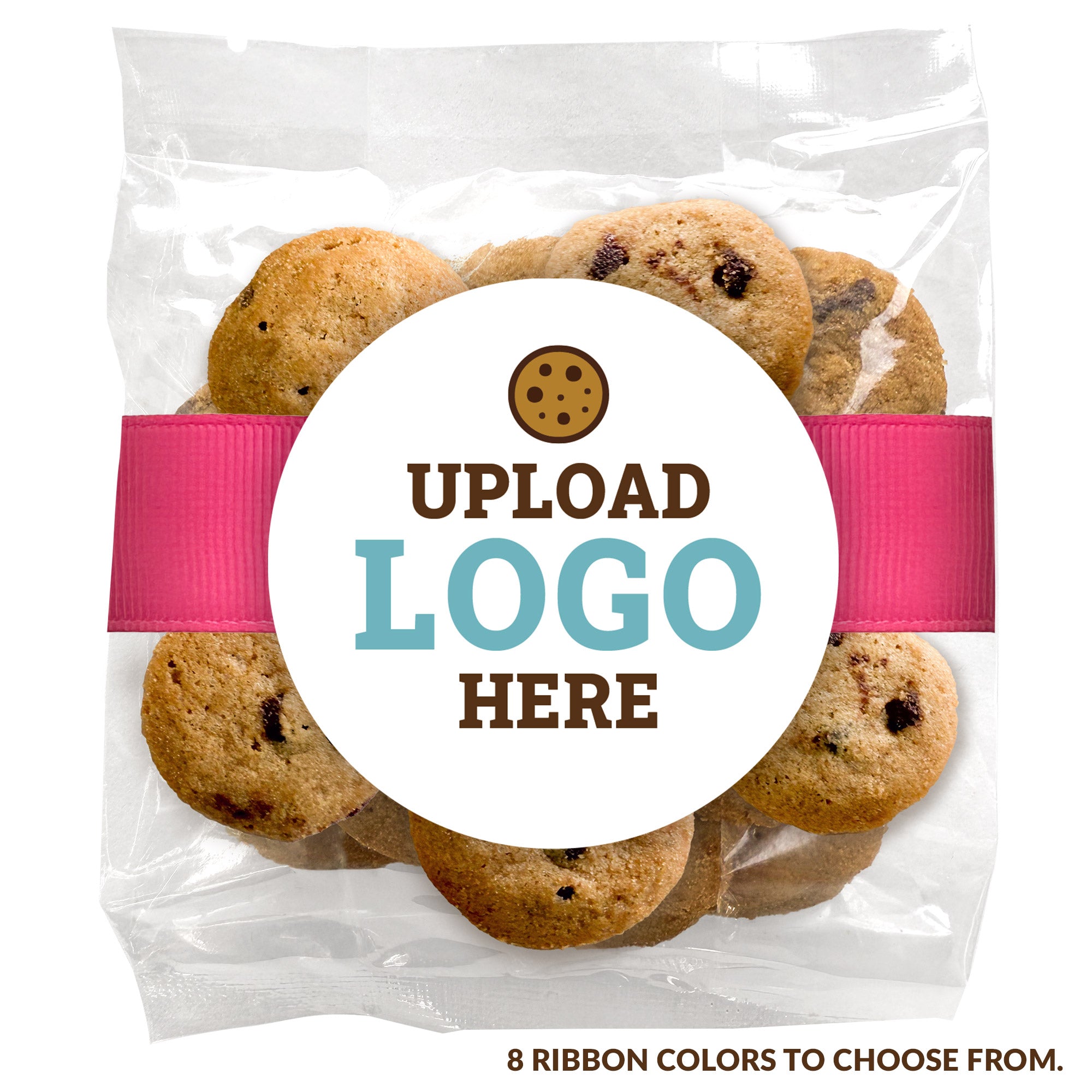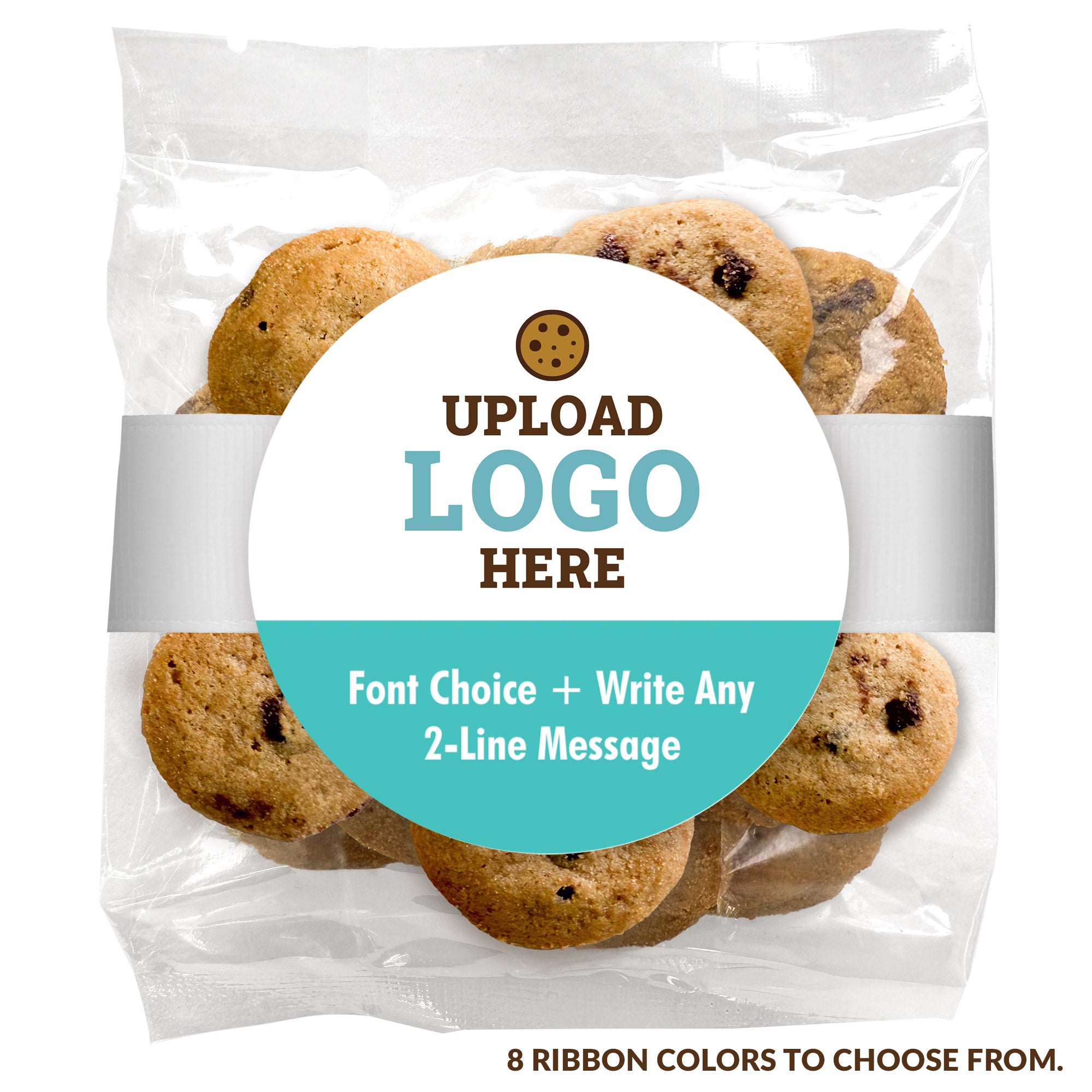Bite-Sized Chocolate Chip Cookies (2 oz., approx. 20 cookies) W/ Full Color Custom Sticker - Corporate Logo Upload