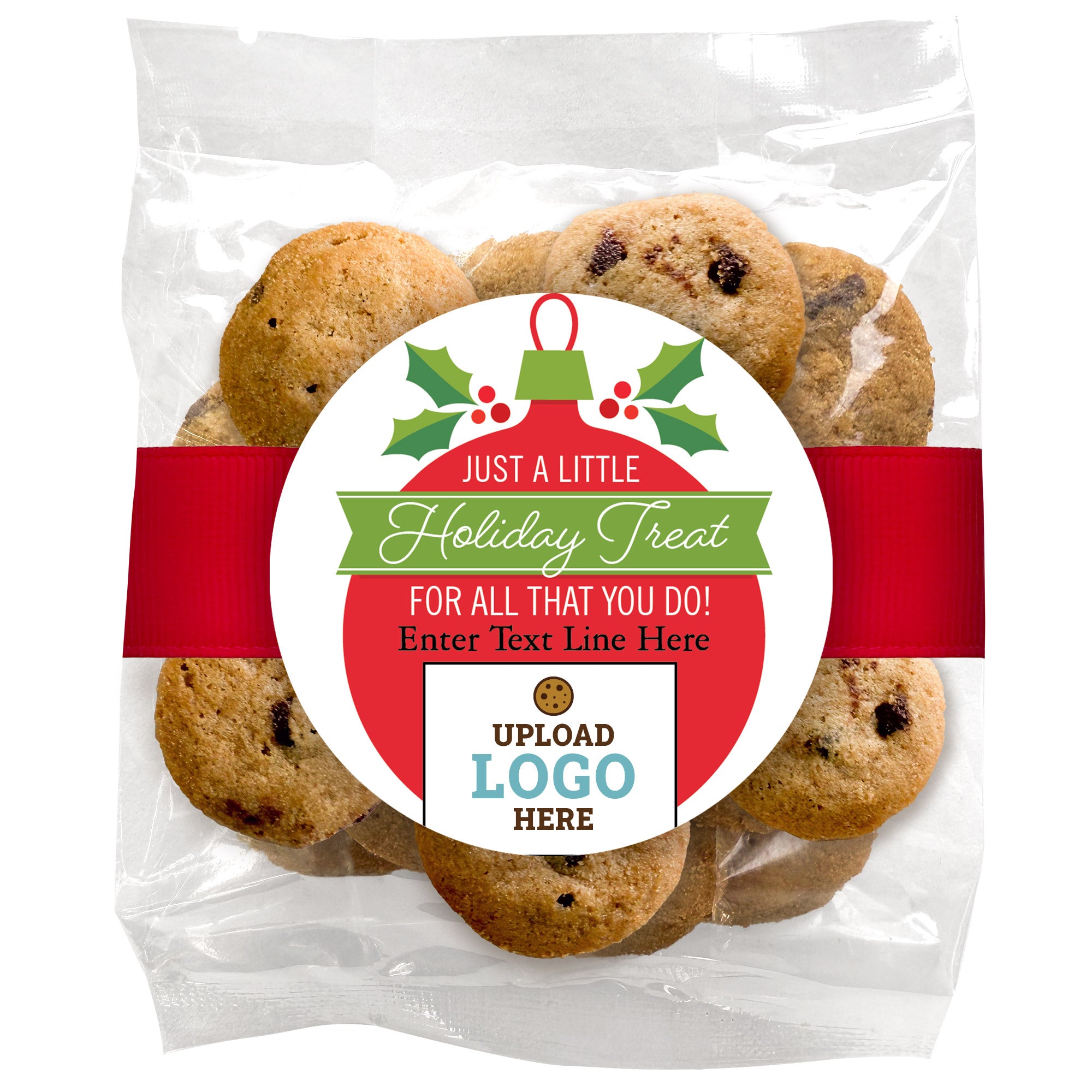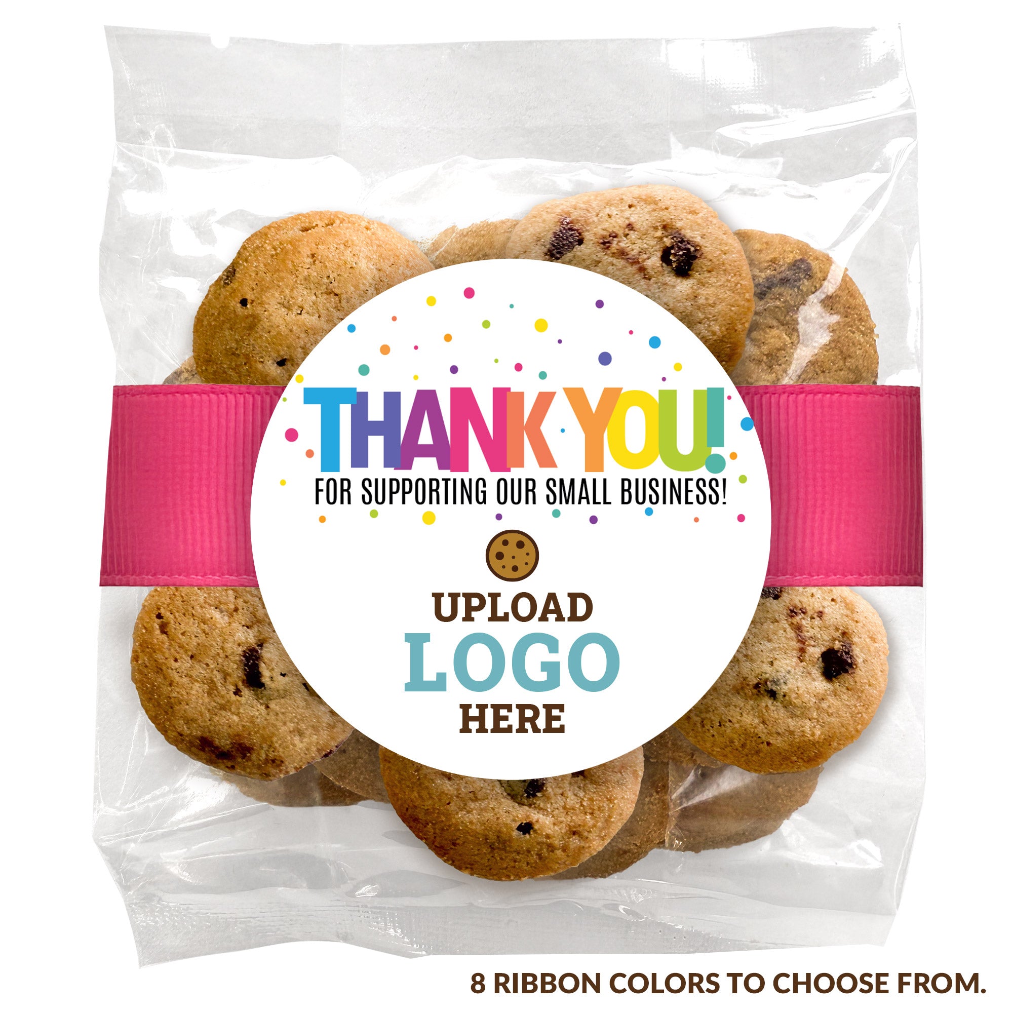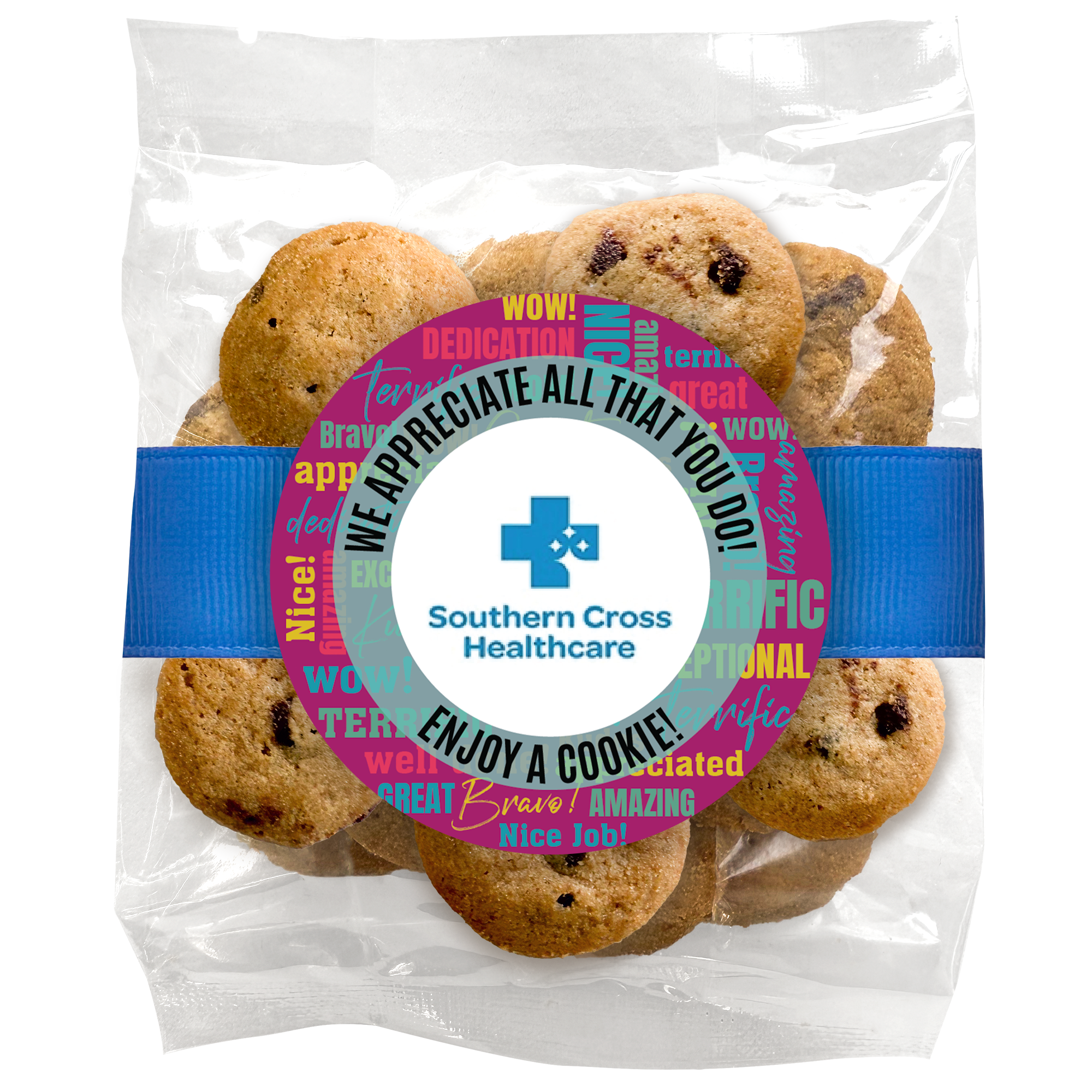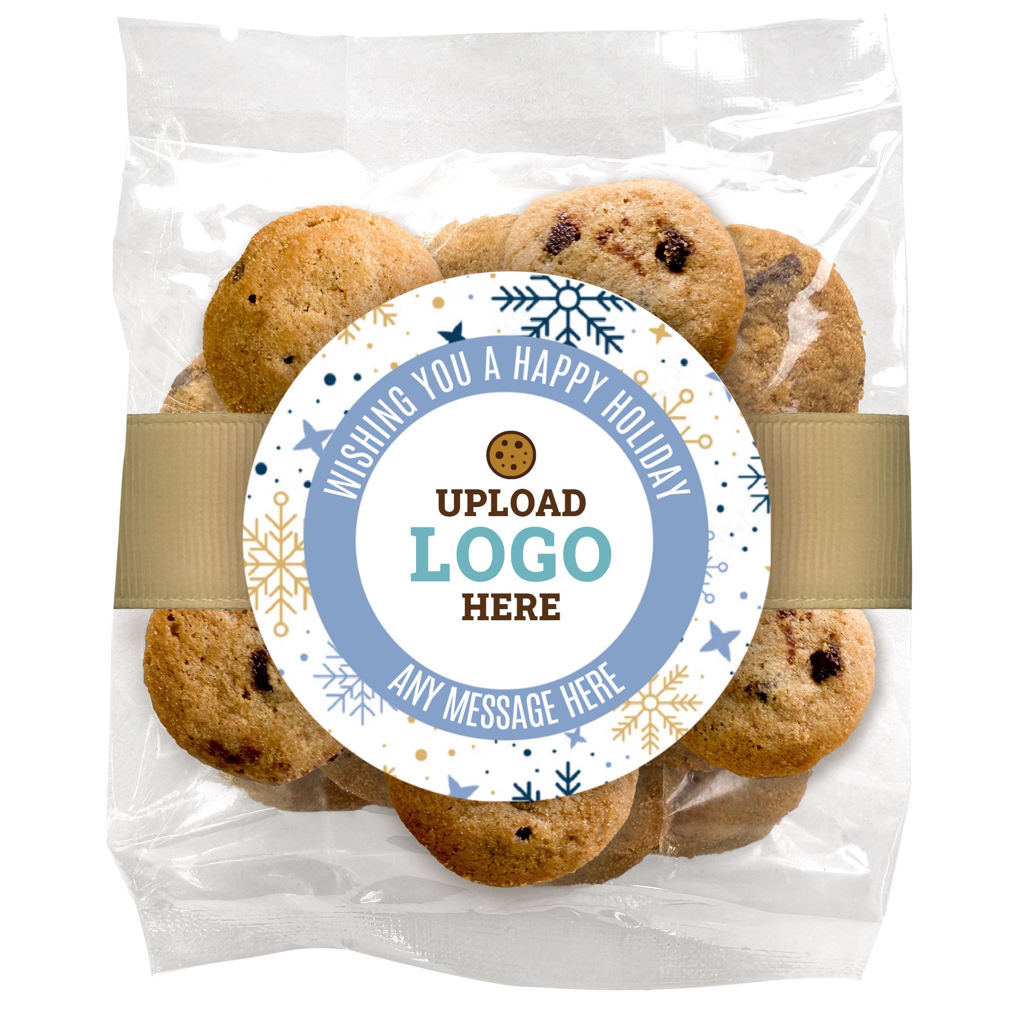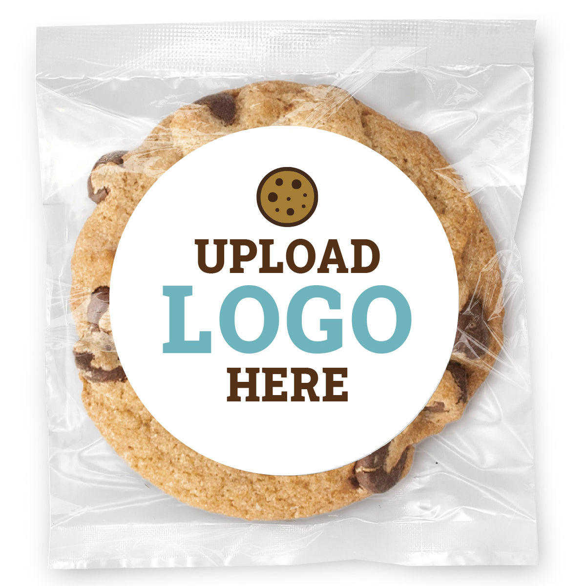 Bite-Sized Chocolate Chip Cookies (2 oz., approx. 20 cookies) W/ Full Color Custom Sticker - Corporate Logo Upload