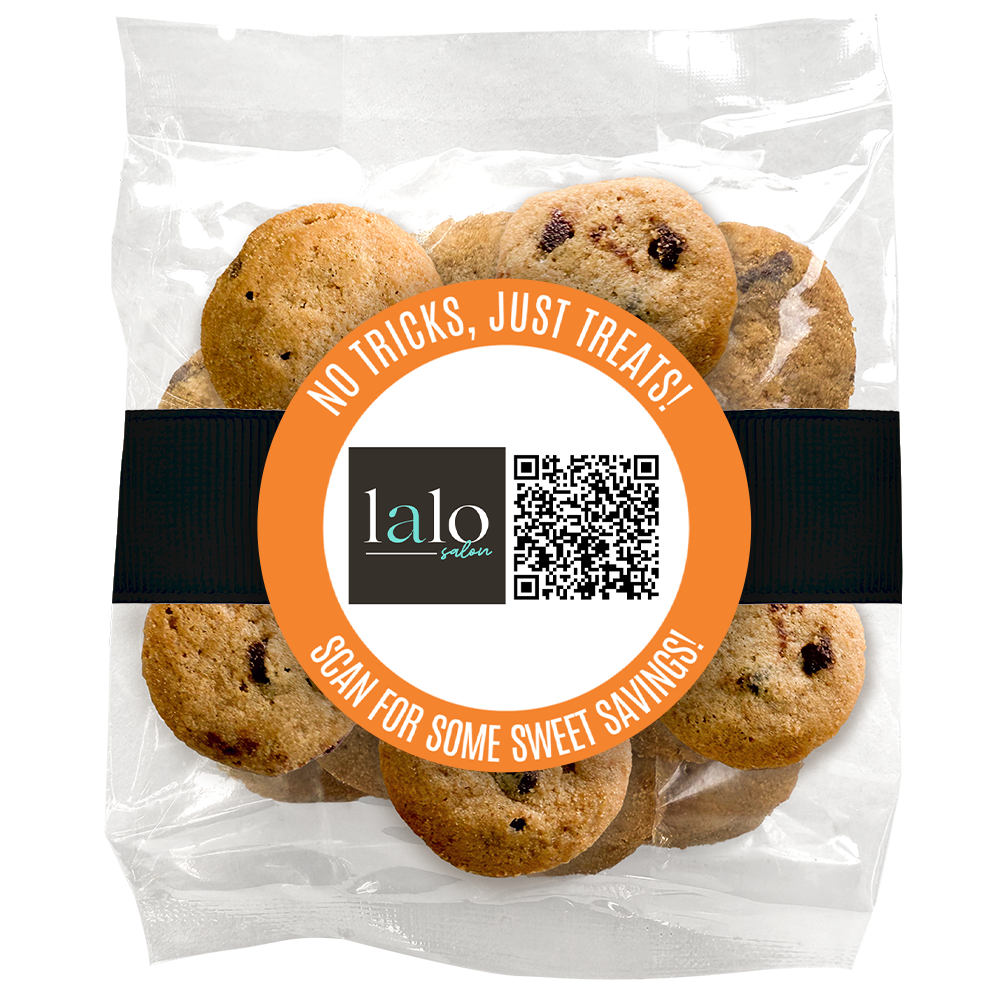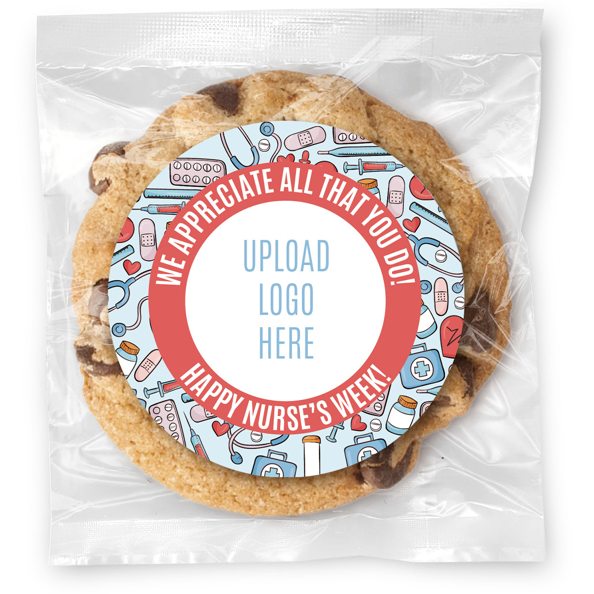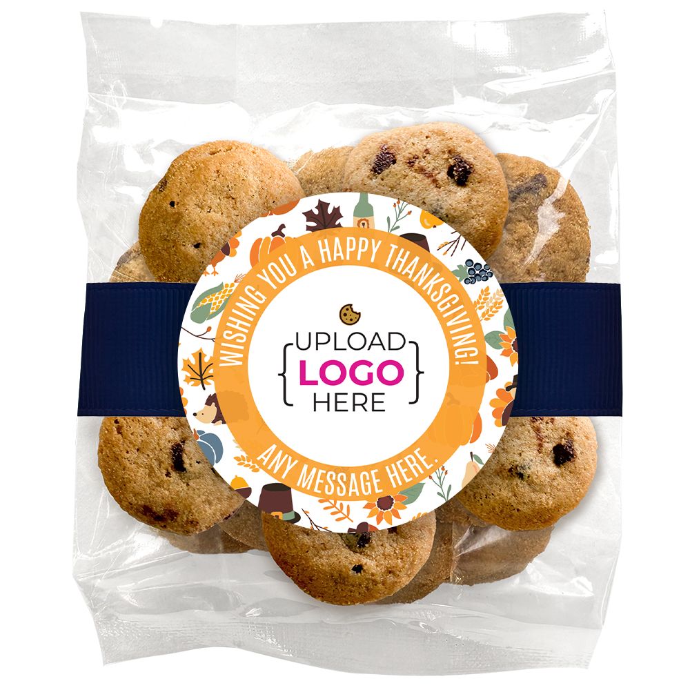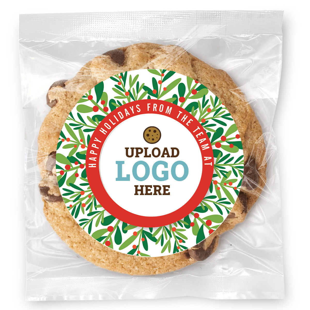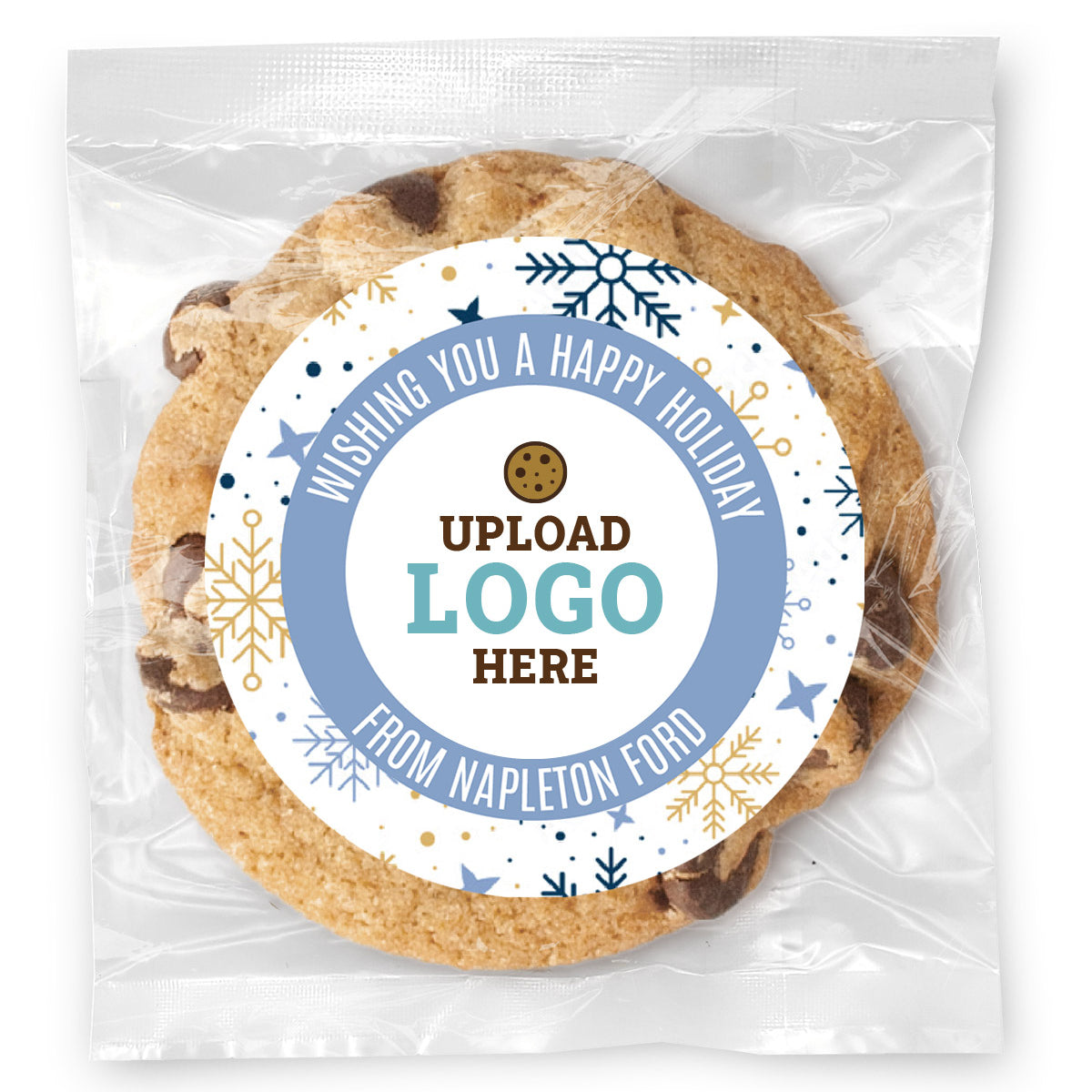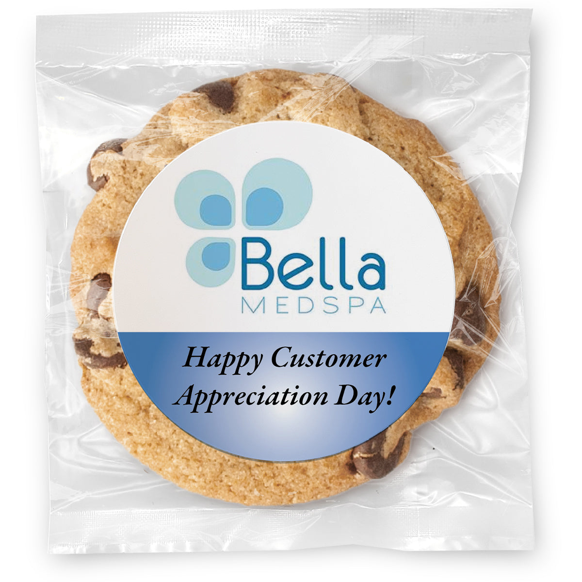 Bite-Sized Chocolate Chip Cookies (2 oz., approx. 20 cookies) W/ Full Color Custom Sticker - Corporate Logo Upload
