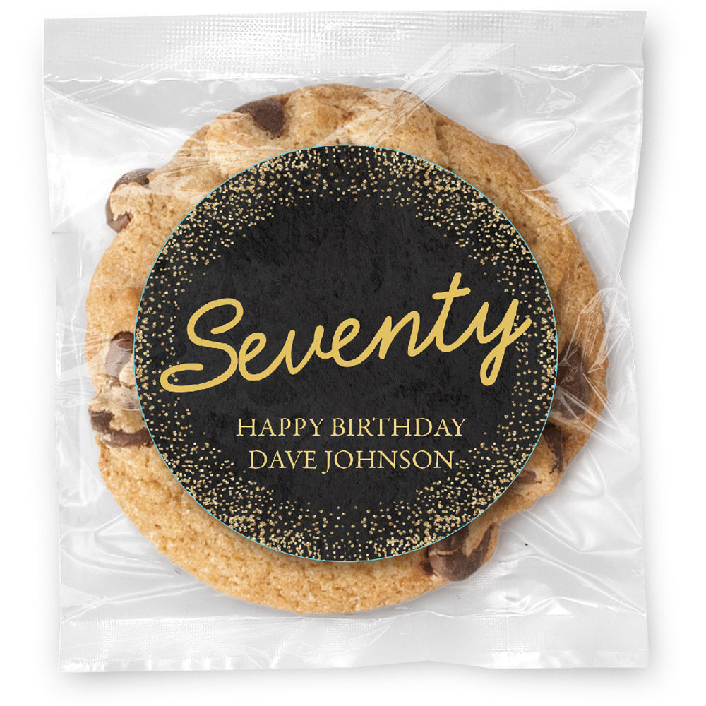 Cursive Gold Age - Seventy - Gourmet Cookie w/ Full Color Personalized sticker