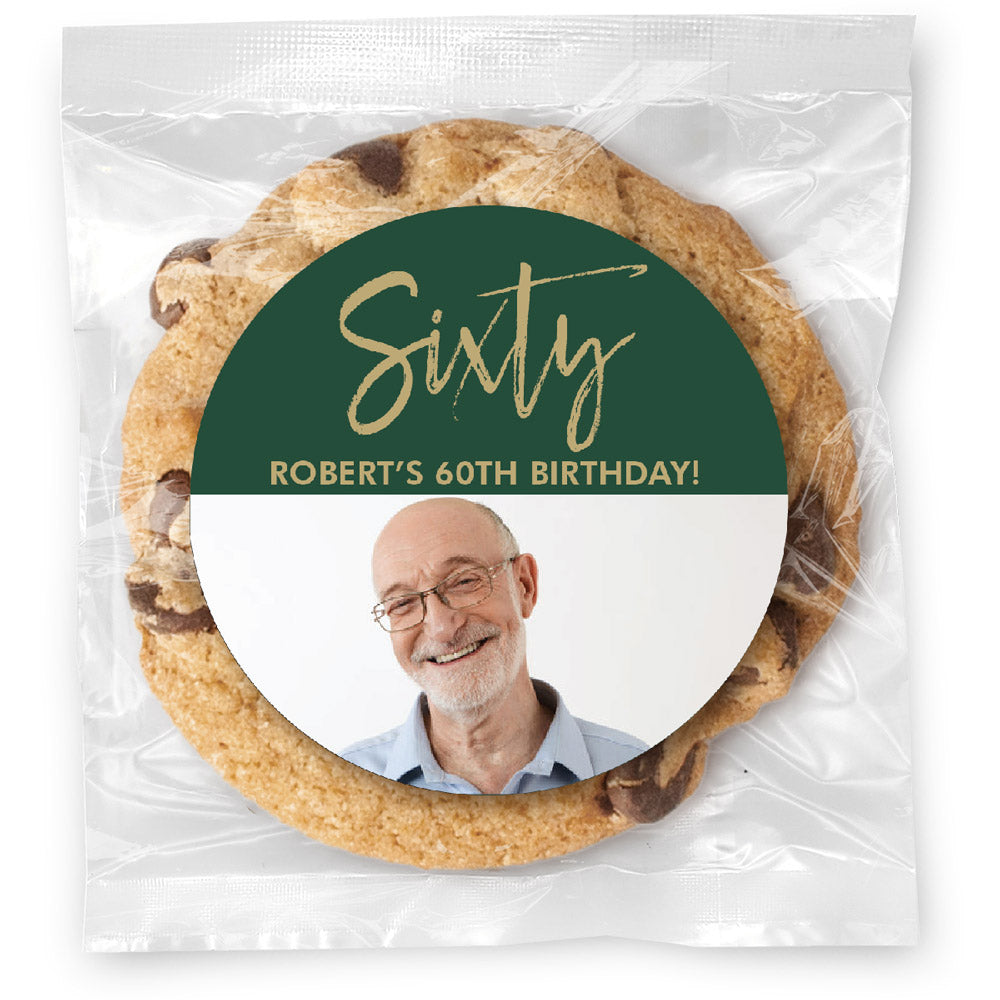 Cursive Sixty Birthday - Gourmet Cookie w/ Full Color Personalized sticker