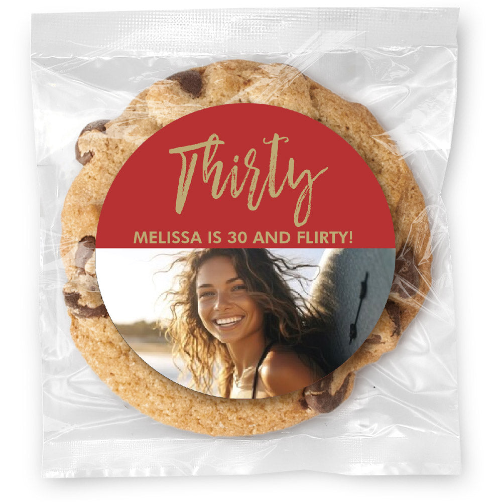 Cursive Thirty Birthday - Gourmet Cookie w/ Full Color Personalized sticker