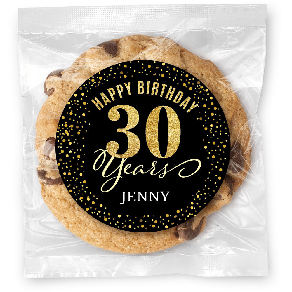 Happy Birthday Gold Age - 30 - Gourmet Cookie w/ Full Color Personalized sticker