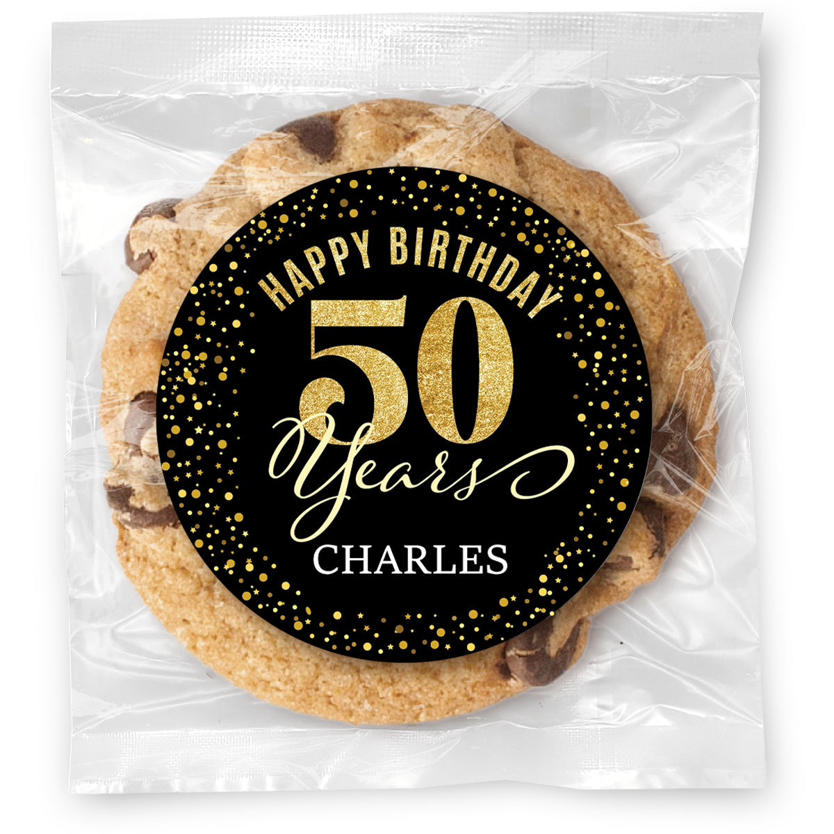 Happy Birthday Gold Age - 50 - Gourmet Cookie w/ Full Color Personalized sticker