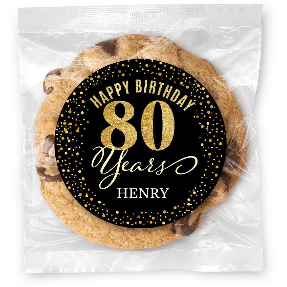 Happy Birthday Gold Age - 80 - Gourmet Cookie w/ Full Color Personalized sticker