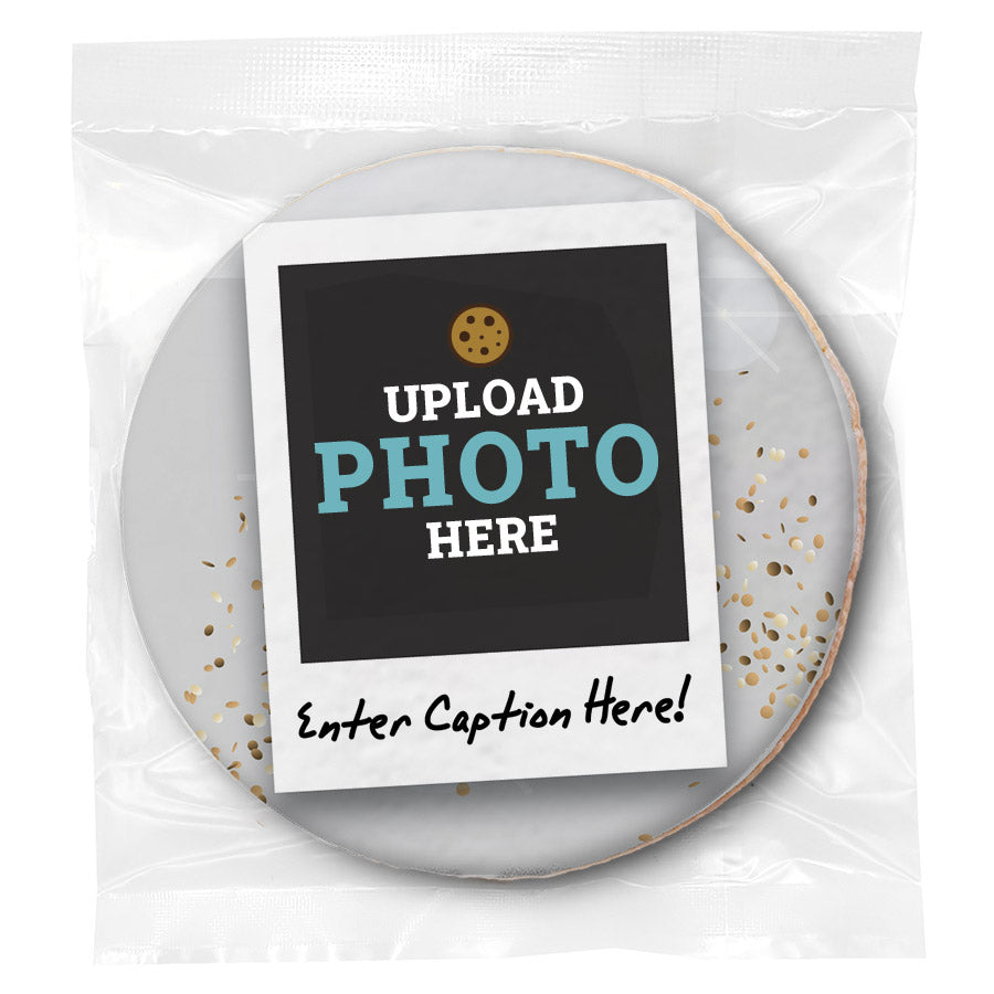 Bite-Sized Chocolate Chip Cookies (2 oz., approx. 14 cookies) W/ Full Color Custom Sticker - Upload your Own Photo Polaroid & Caption