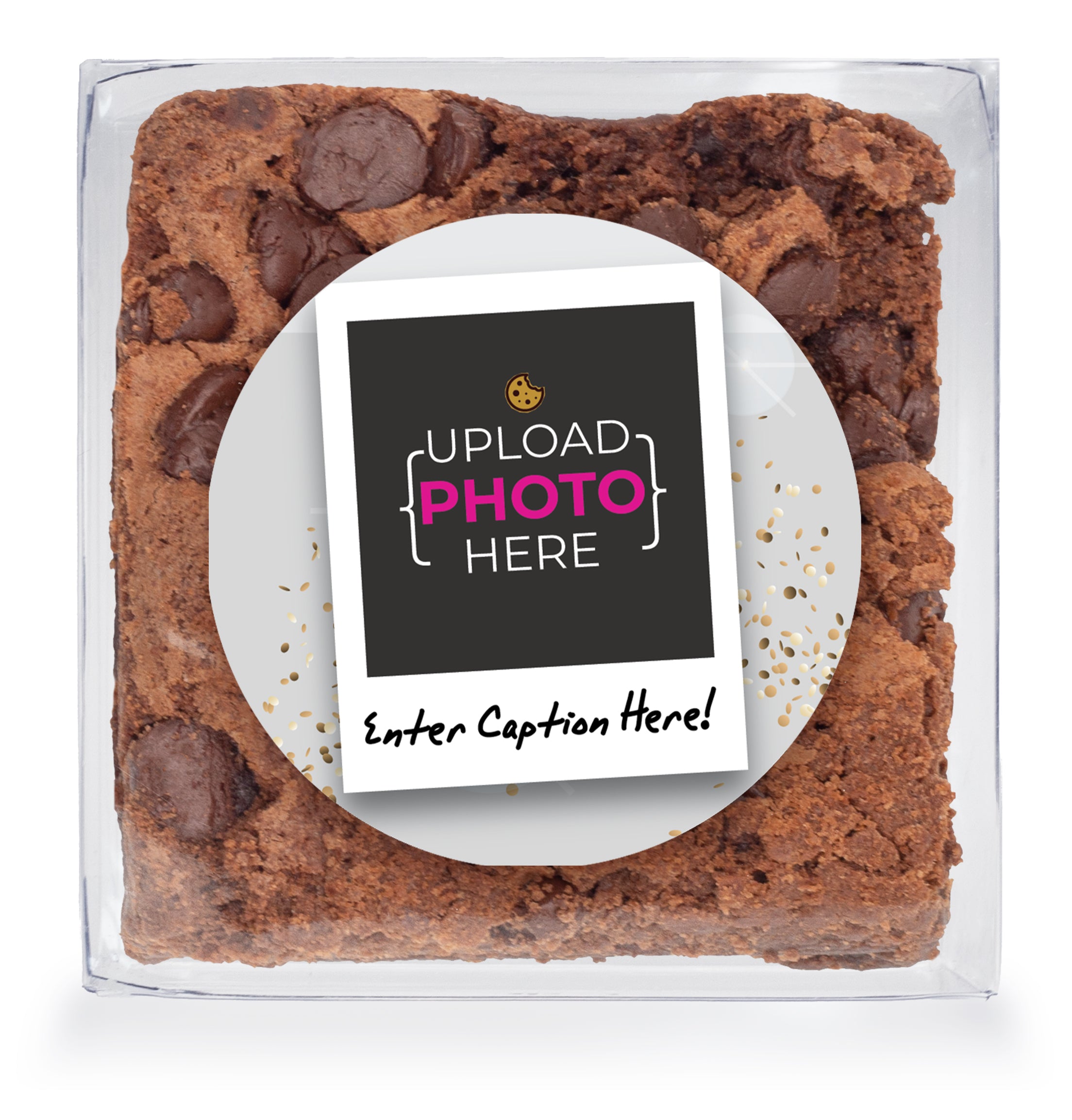 Upload your Own Photo w/ Color Choice Polaroid & Caption - Chocolate Chip Fudge Brownies W/Full Color Personalized Sticker