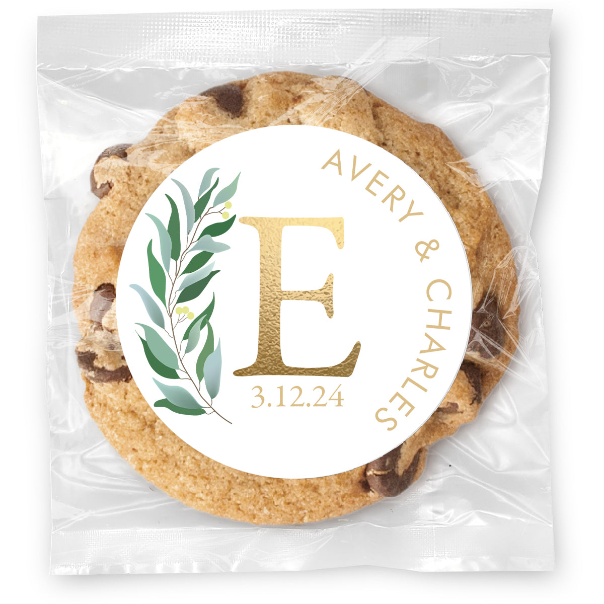 Gold Leafy Monogram - Gourmet Cookie w/ Full Color Personalized sticker