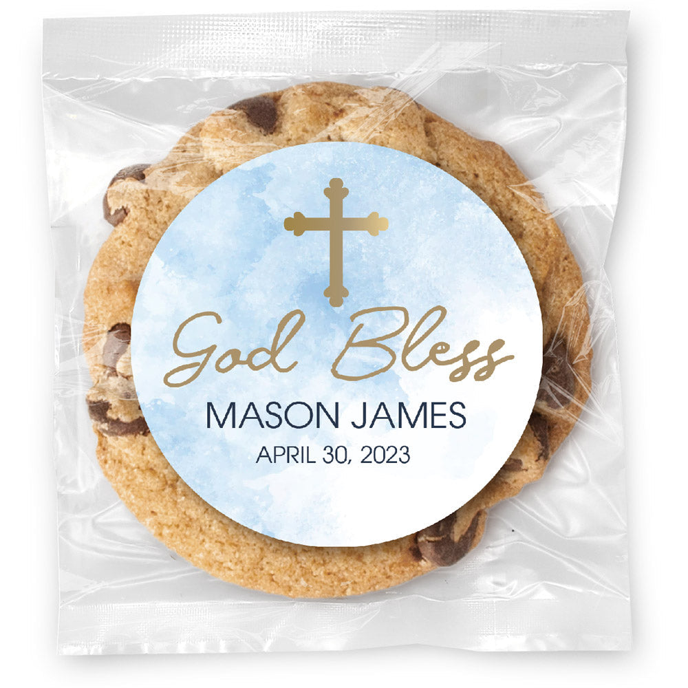 Blue Clouds Cross - Gourmet Cookie w/ Full Color Personalized sticker