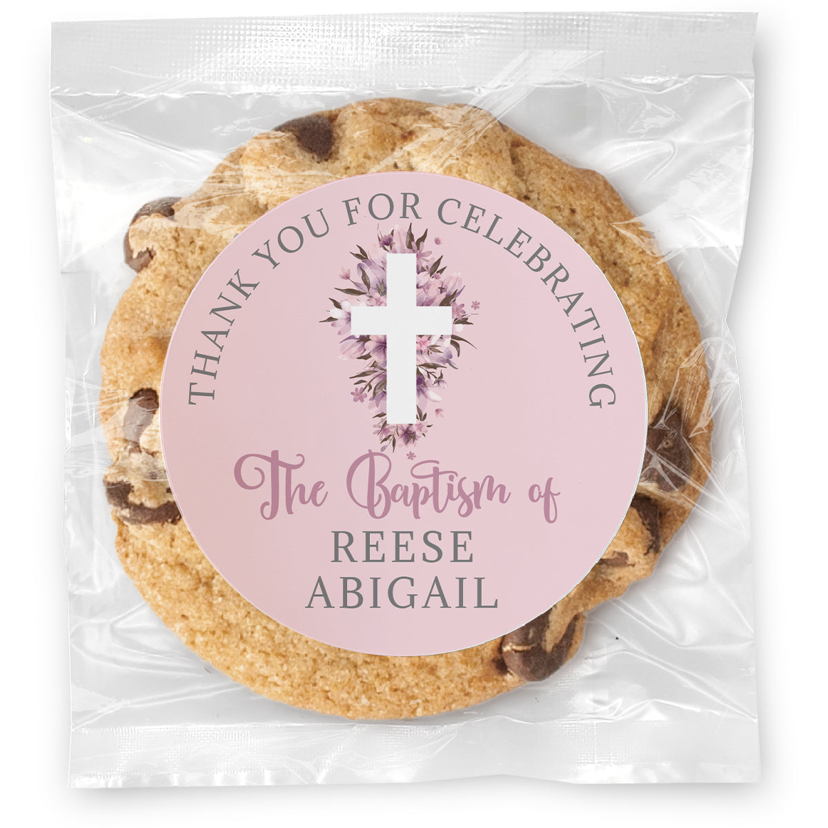 Thank you for celebrating Pink Cross - Gourmet Cookie w/ Full Color Personalized sticker