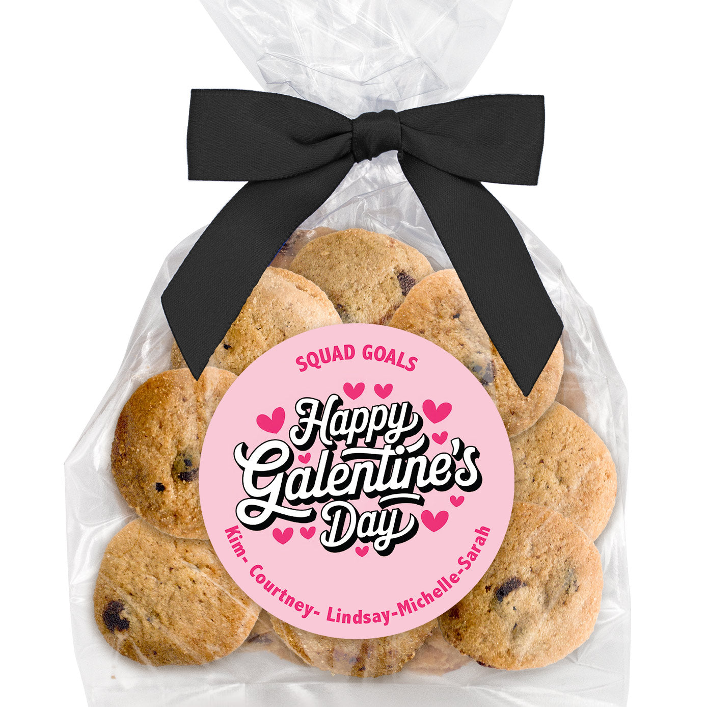 Happy Galentines Day - Bite-Sized Chocolate Chip Cookies (3 oz., approx. 21 cookies) W/ Full Color Custom Sticker & Bow Choice