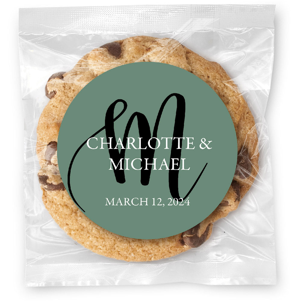 Simple Monogram Wedding - Gourmet Cookie w/ Full Color Personalized sticker
