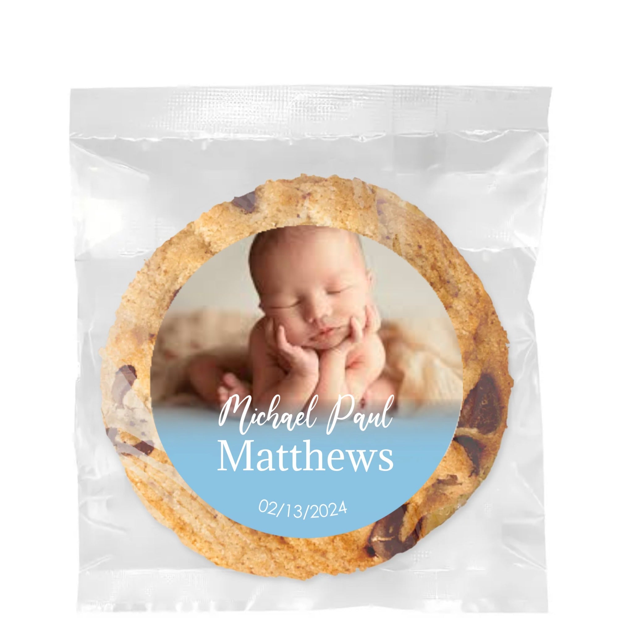 Baby Photo Blue Fade - Gourmet Cookie w/ Full Color Personalized sticker