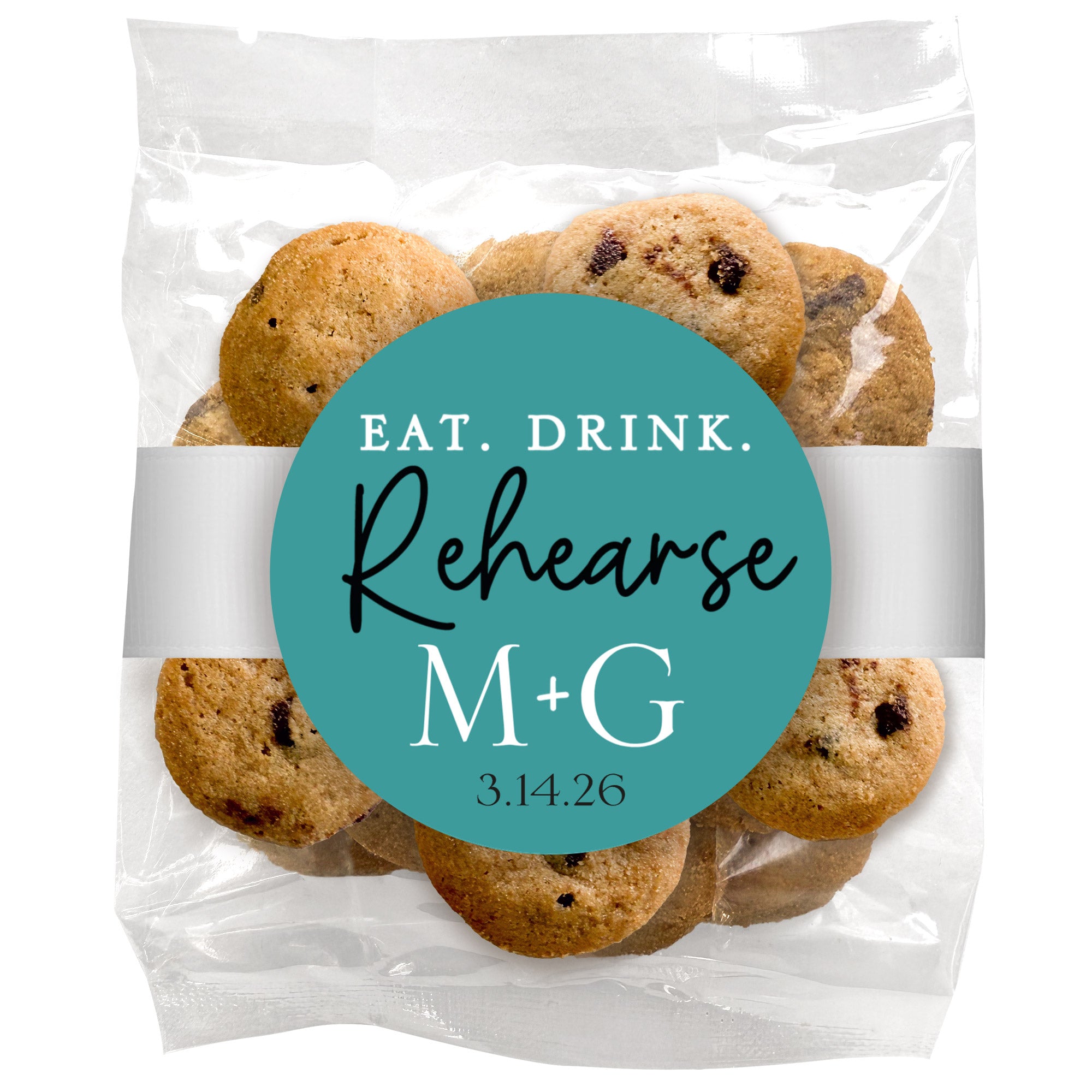 Bite-Sized Chocolate Chip Cookies (2 oz., approx. 16 cookies) W/ Full Color Custom Sticker - Eat Drink Rehearse