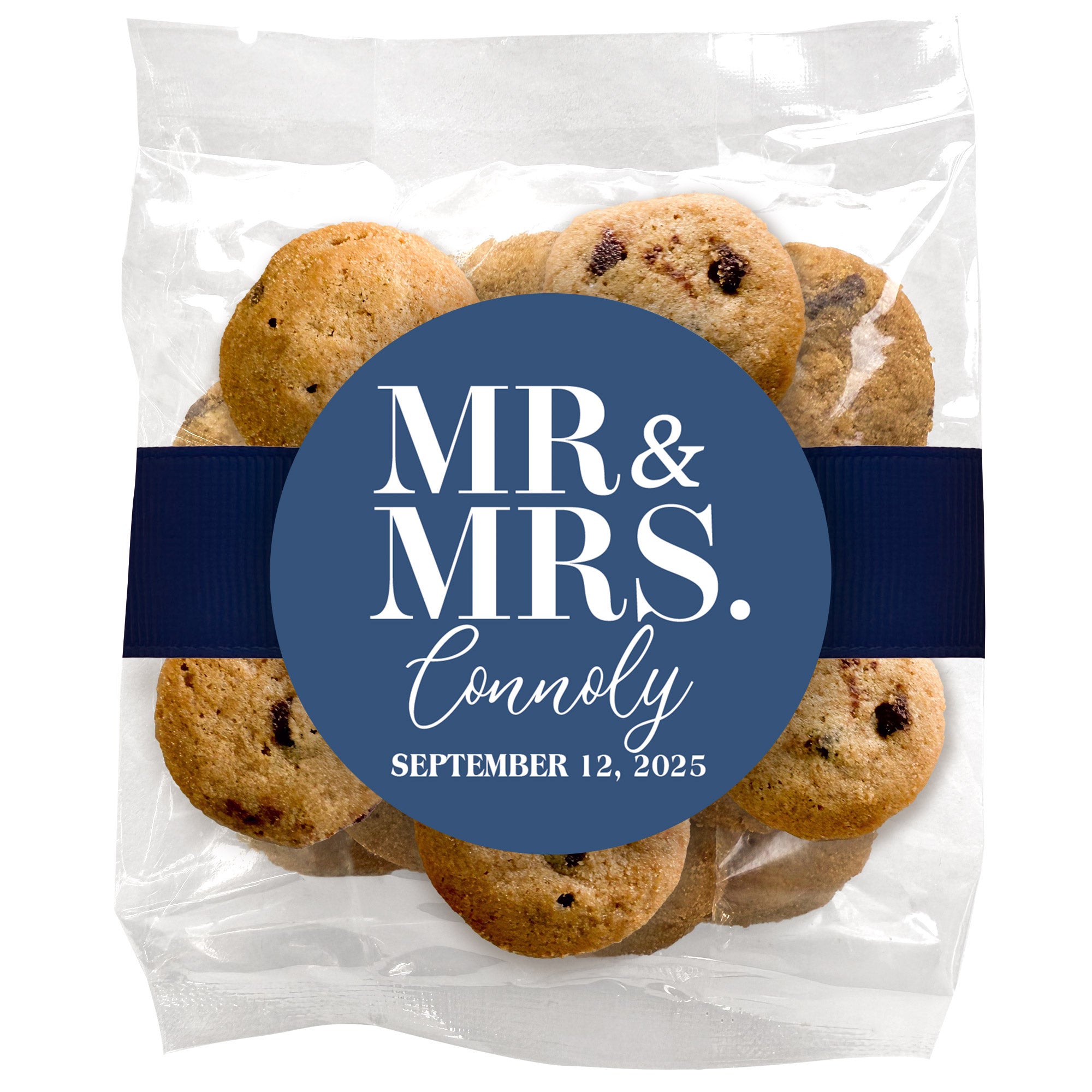 Bite-Sized Chocolate Chip Cookies (2 oz., approx. 16 cookies) W/ Full Color Custom Sticker - Mr. & Mrs.