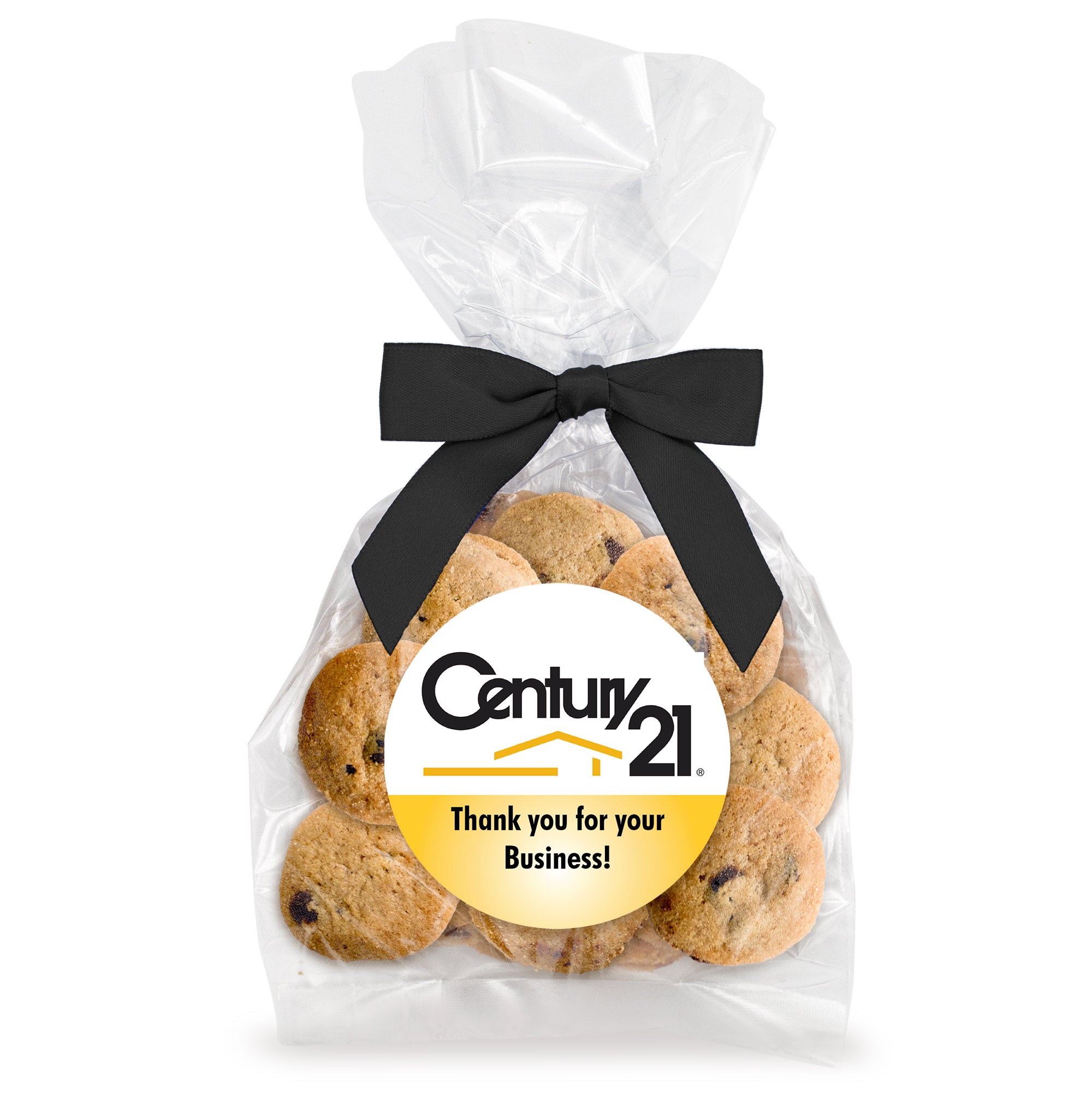 Bite-Sized Chocolate Chip Cookies (3 oz., approx. 21 cookies) W/ Full Color Custom Sticker & Bow Choice - Logo Upload & Message