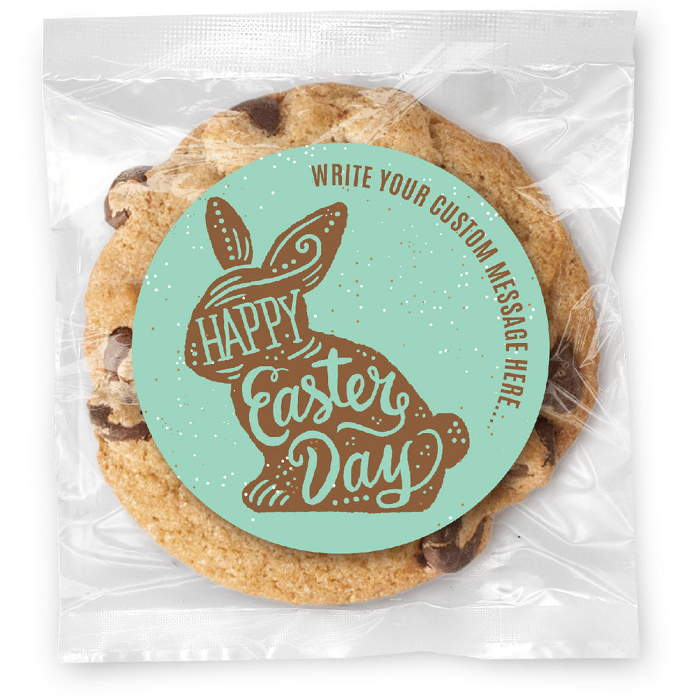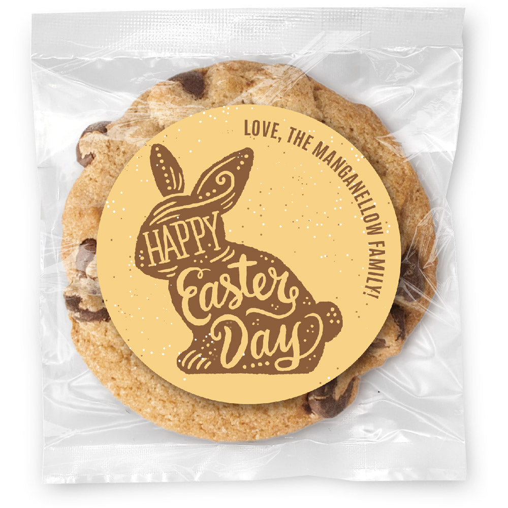 Brown Bunny Easter Wishes - Gourmet Cookie w/ Full Color Personalized sticker