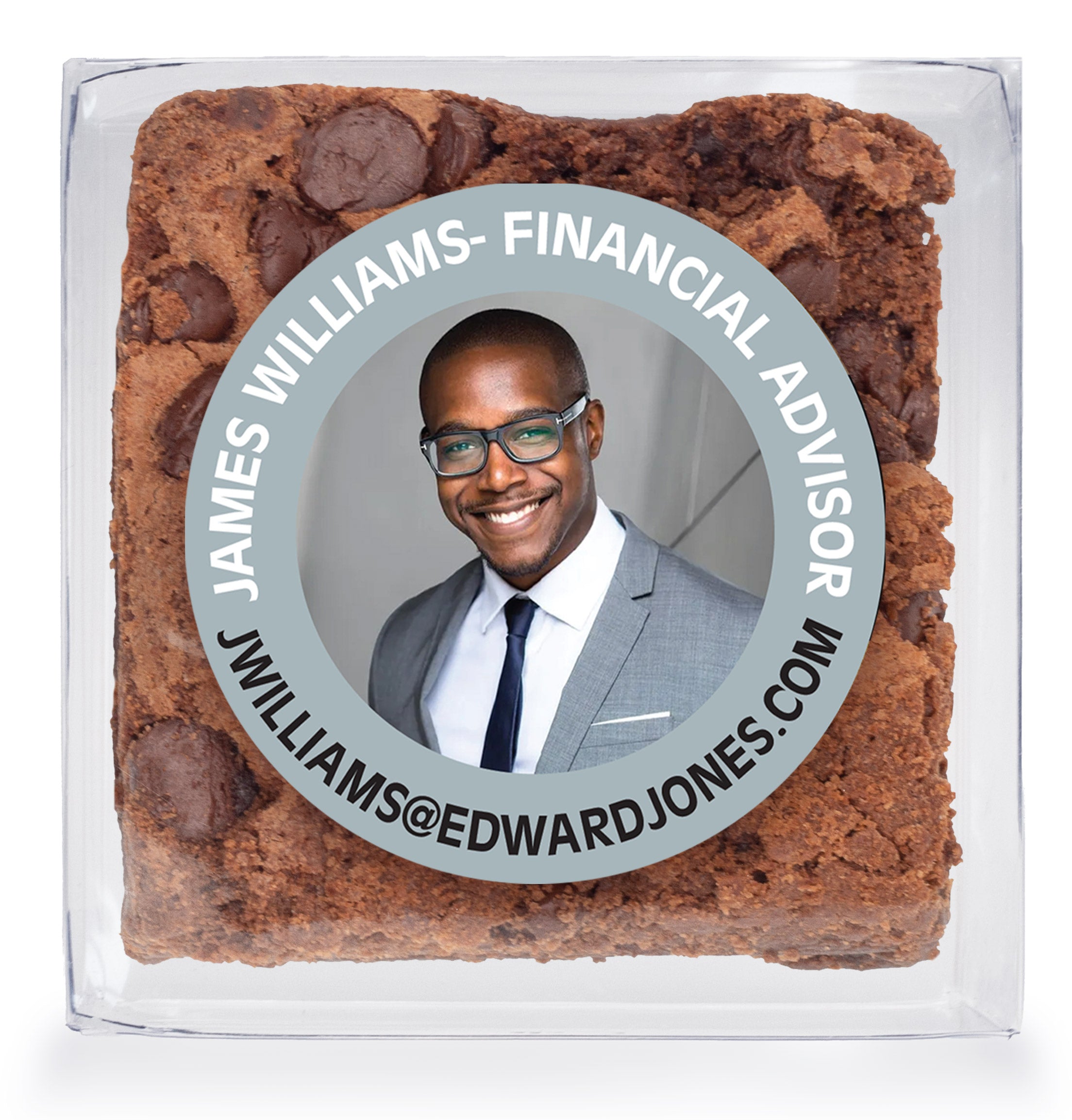 Business Design Your Own - Chocolate Chip Fudge Brownies W/Full Color Personalized Sticker Personalized Sticker