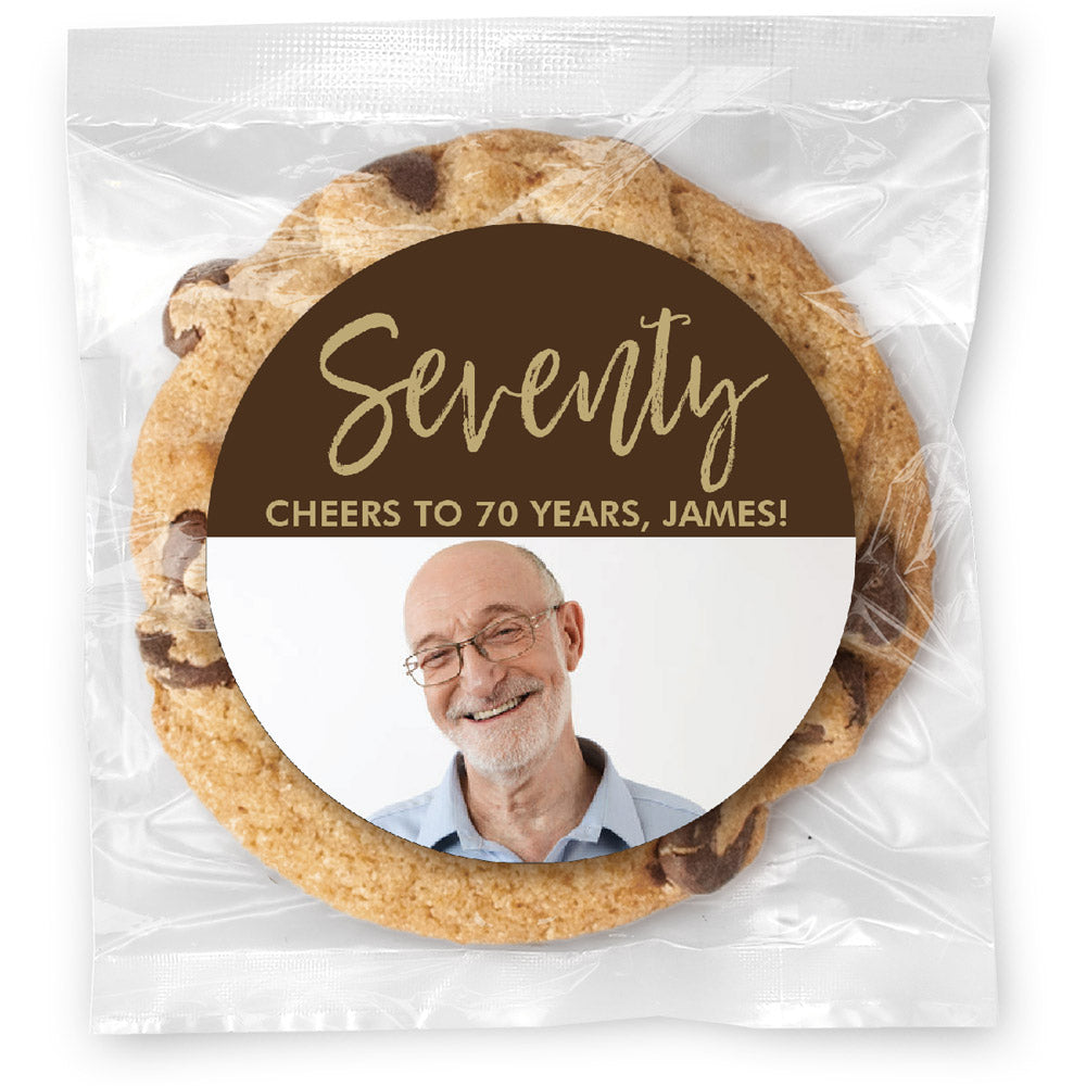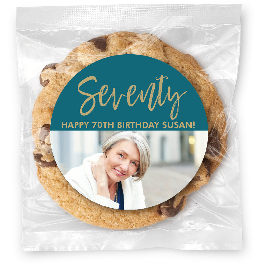 Cursive Seventy Birthday - Gourmet Cookie w/ Full Color Personalized sticker