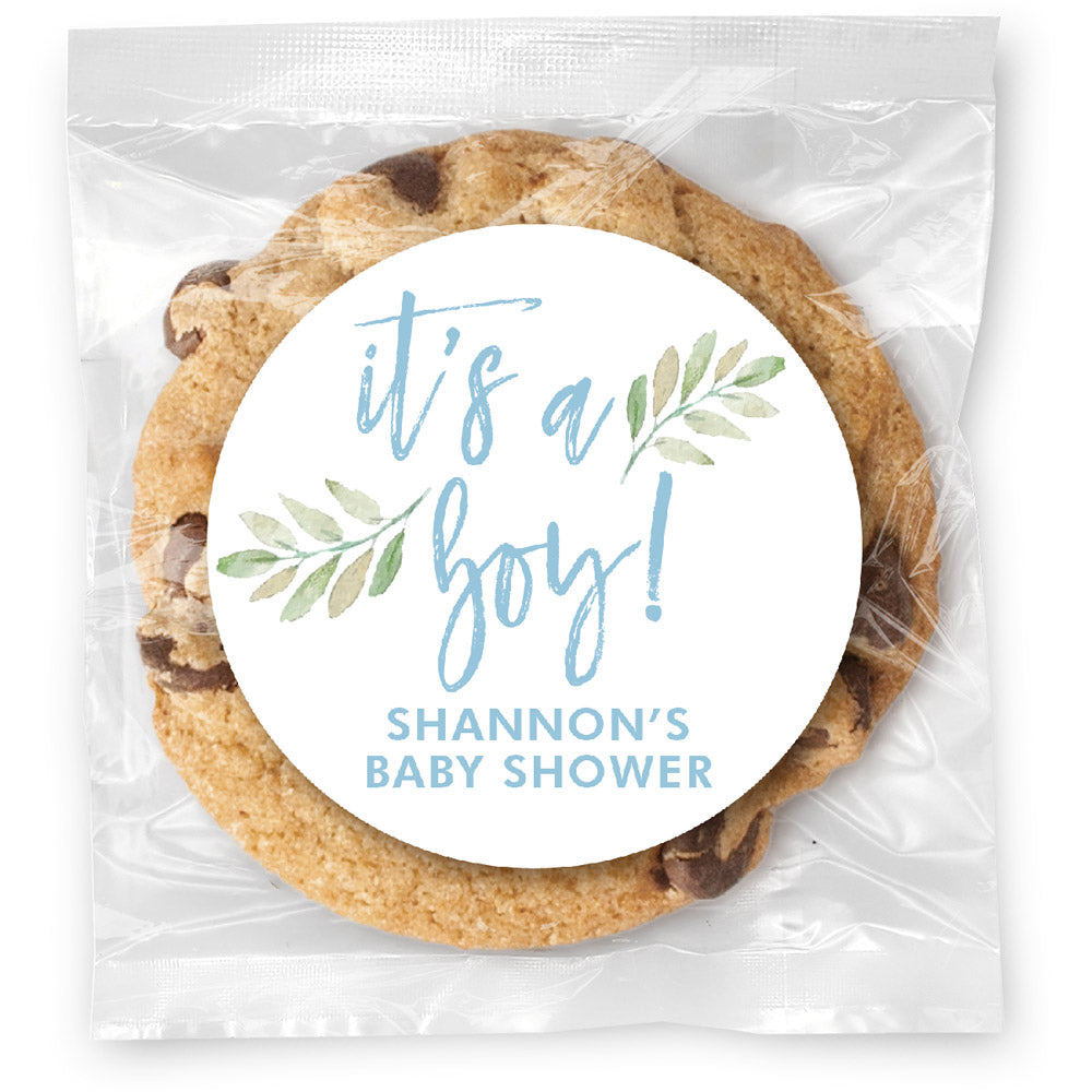 It's a Boy Leaves - Gourmet Cookie w/ Full Color Personalized sticker