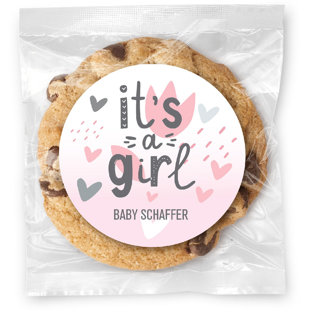 It's a Girl Hearts - Gourmet Cookie w/ Full Color Personalized sticker